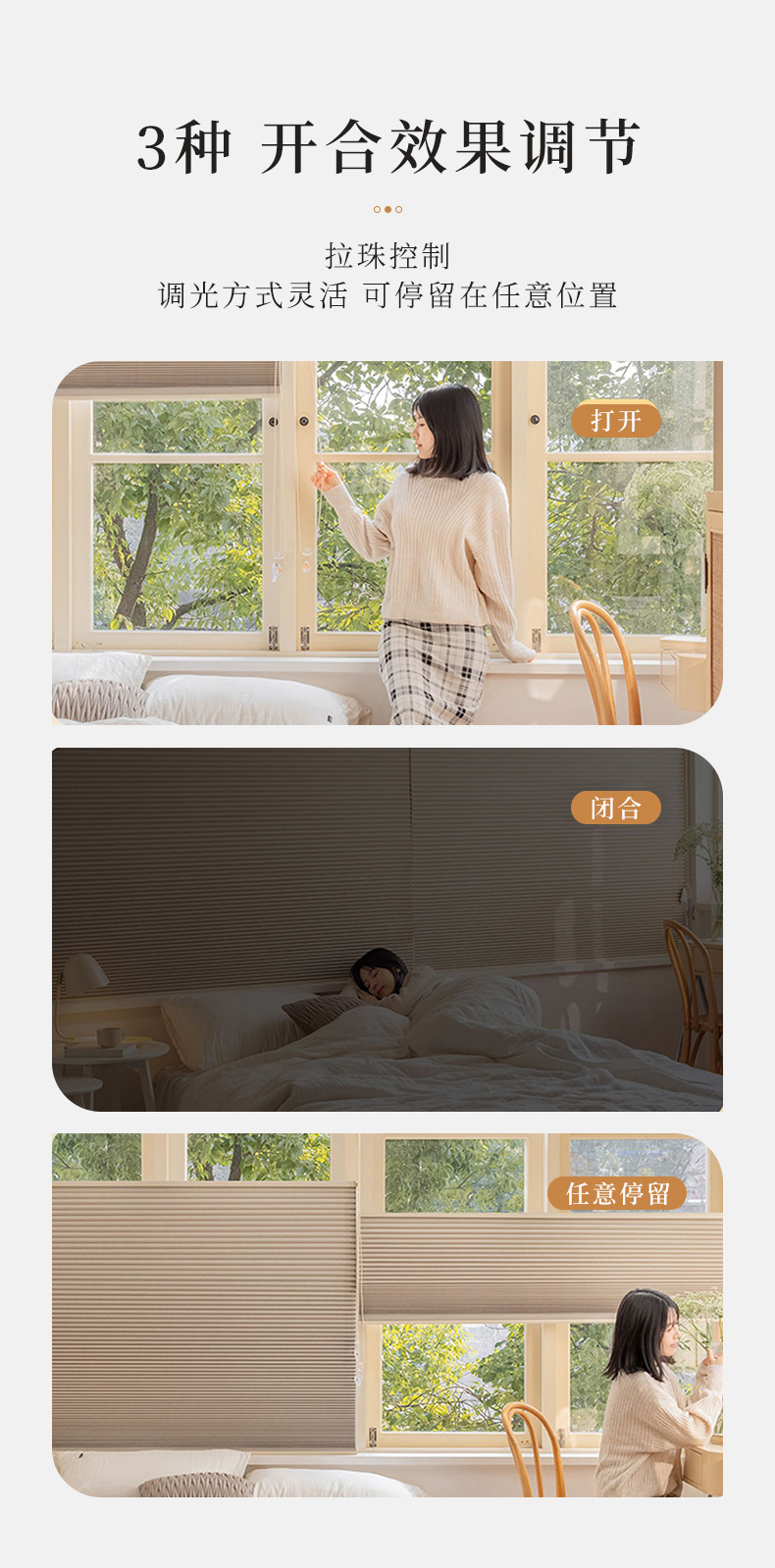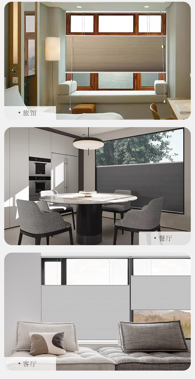 깃발형 끈 조절식 호텔 및 민박용 벌집형 커튼, 상하 개폐식 벌집형 커튼, 사무실용 차양 및 단열 블라인드스토어 가기