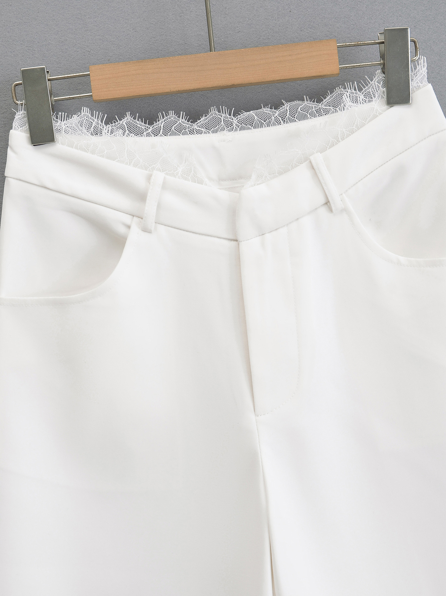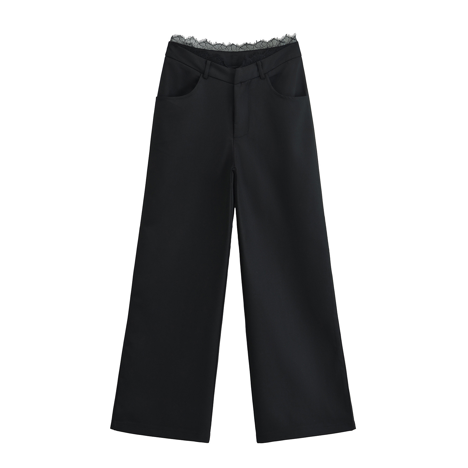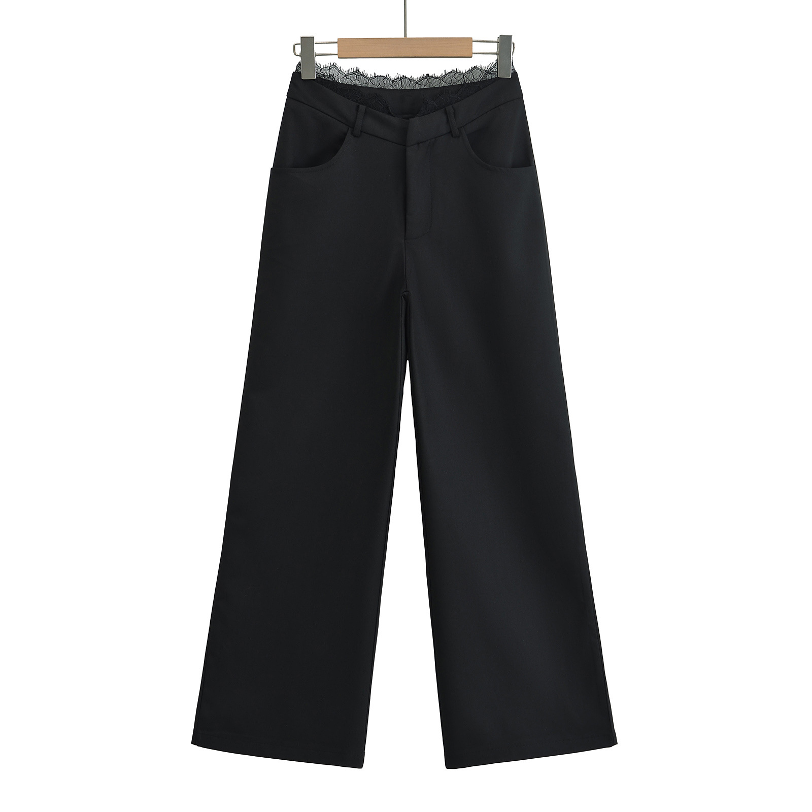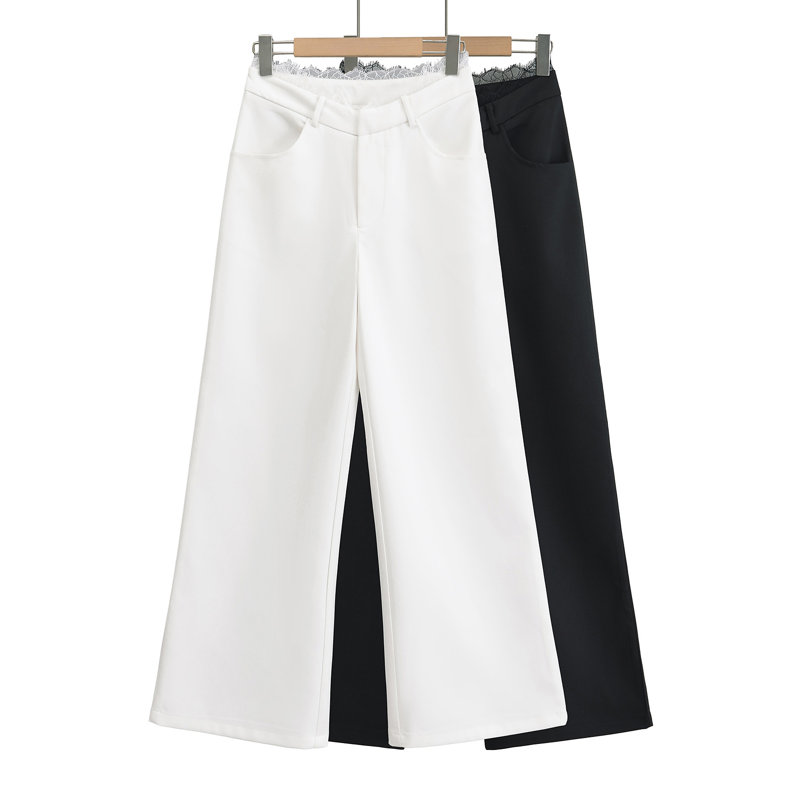 틈새 디자인 허리 레이스 레이스 단색 넓은 다리 바지 여성용 봄과 여름 느슨한 직선 바지 바지