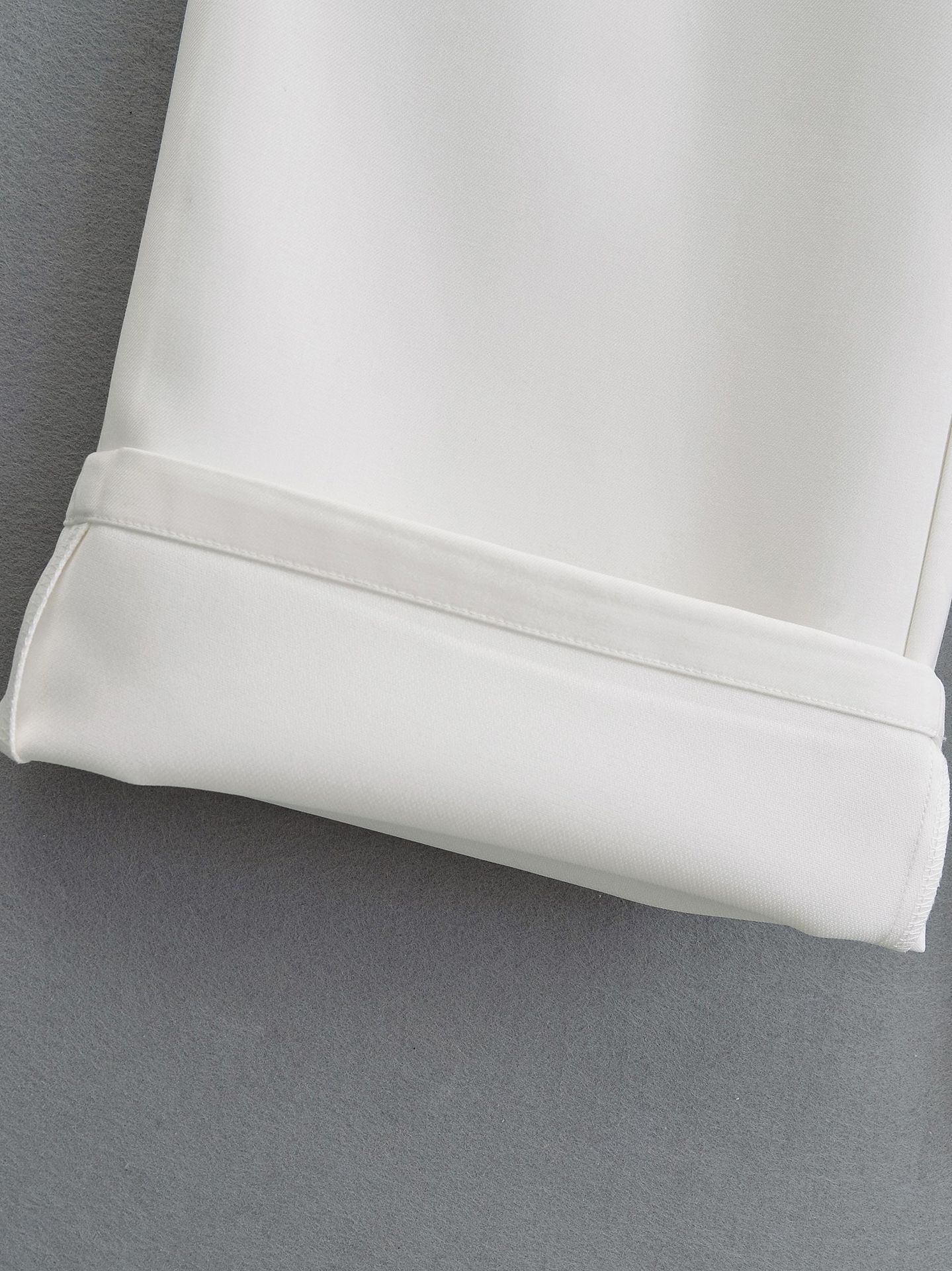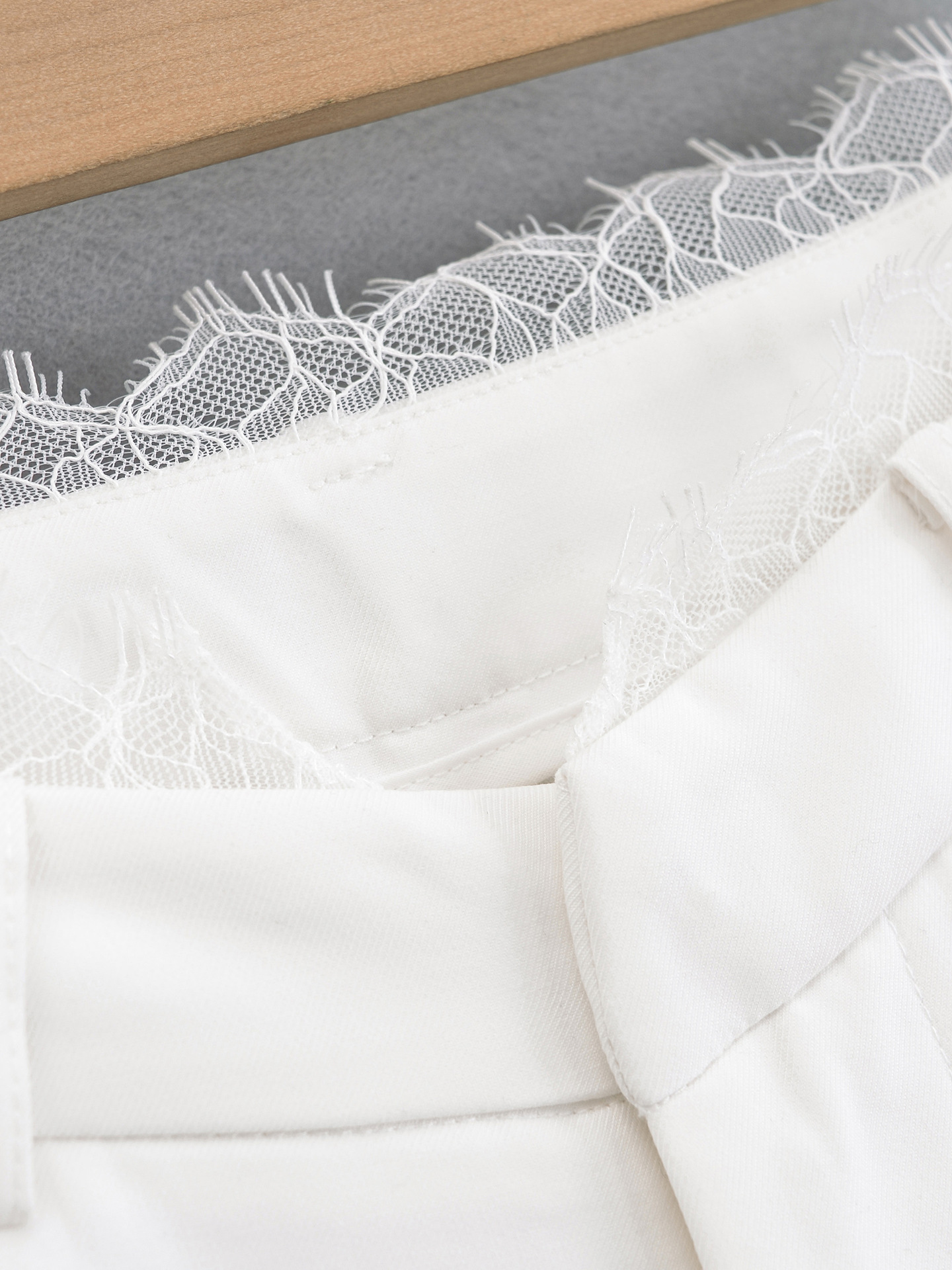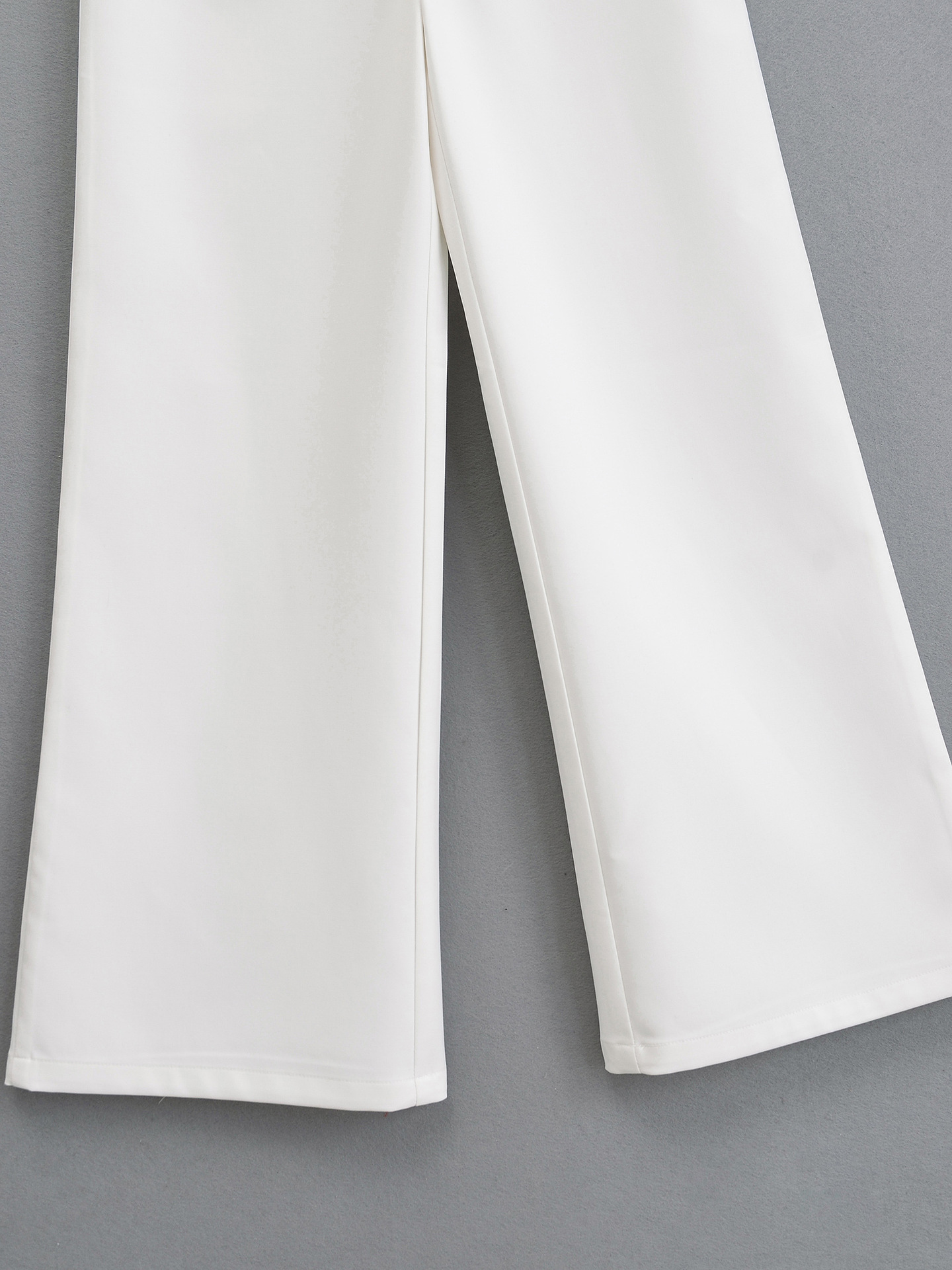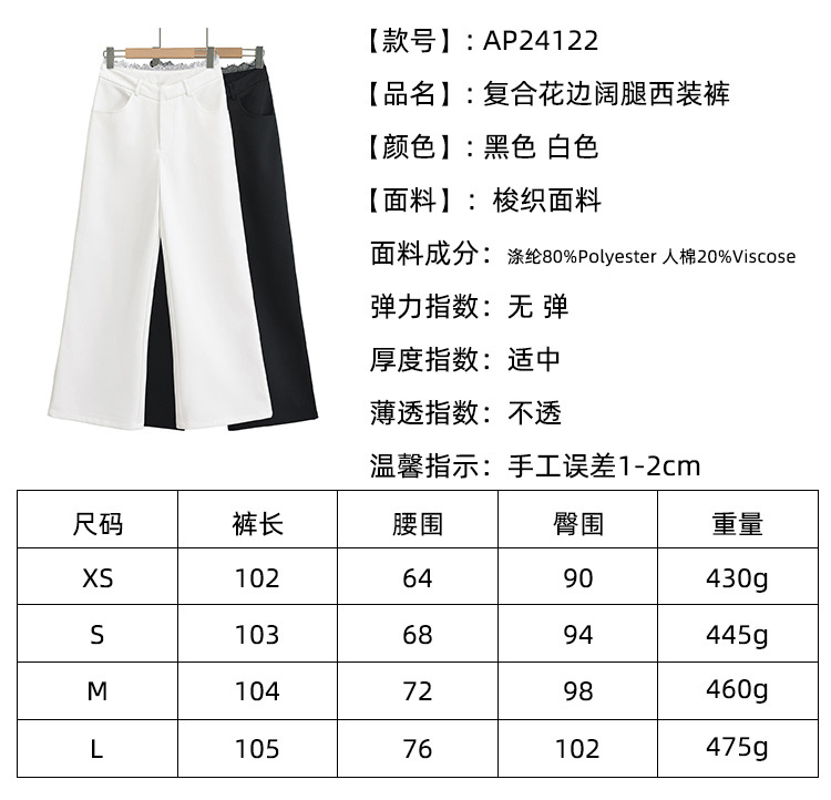 틈새 디자인 허리 레이스 레이스 단색 넓은 다리 바지 여성용 봄과 여름 느슨한 직선 바지 바지