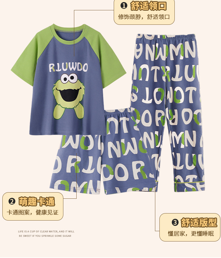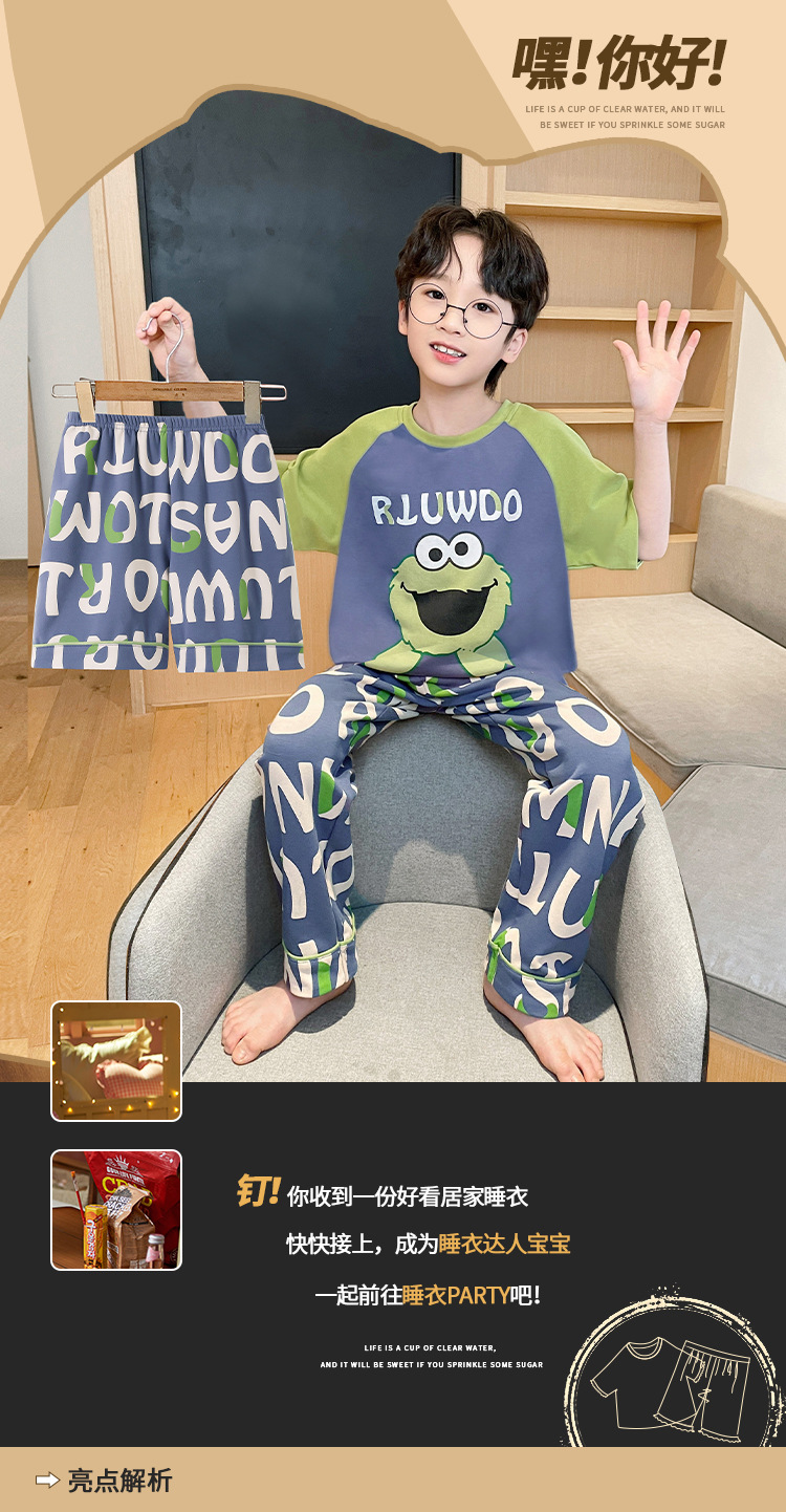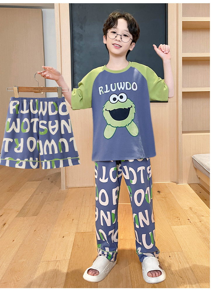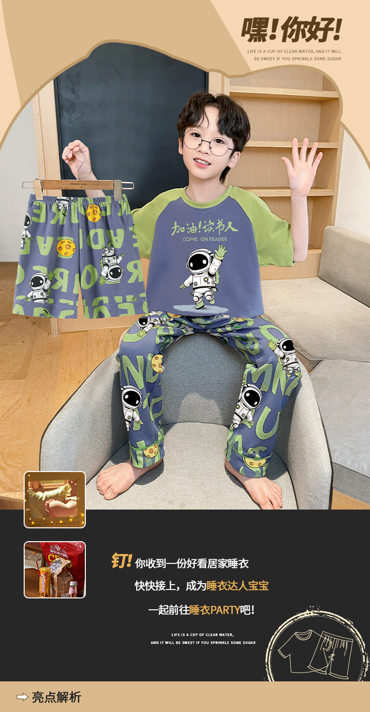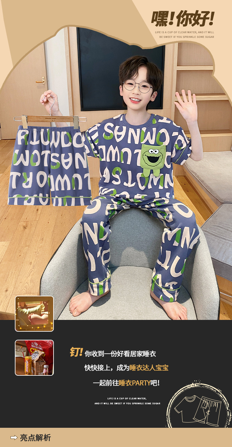 남학생 잠옷 여름면 반팔 바지 3 종 세트 어린이 소년 중 · 대형 청소년 여름 가정 옷