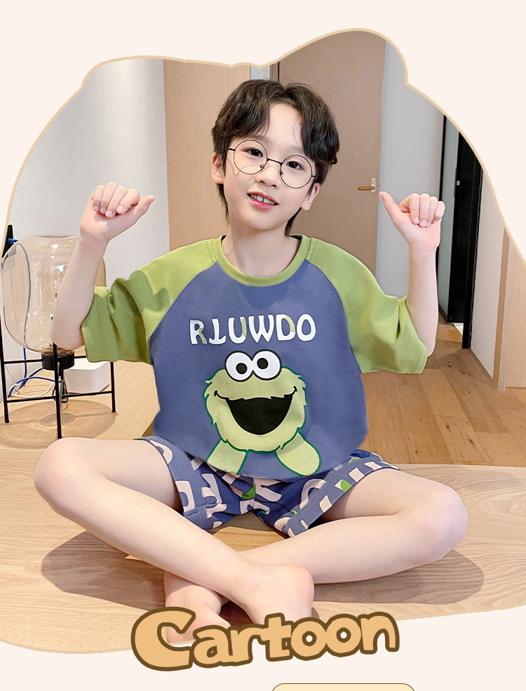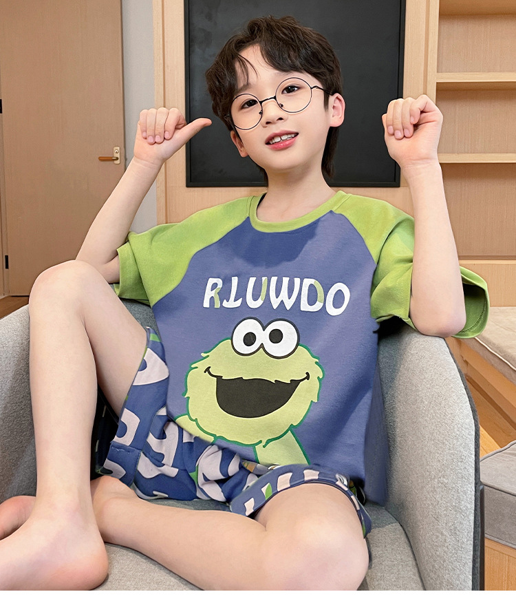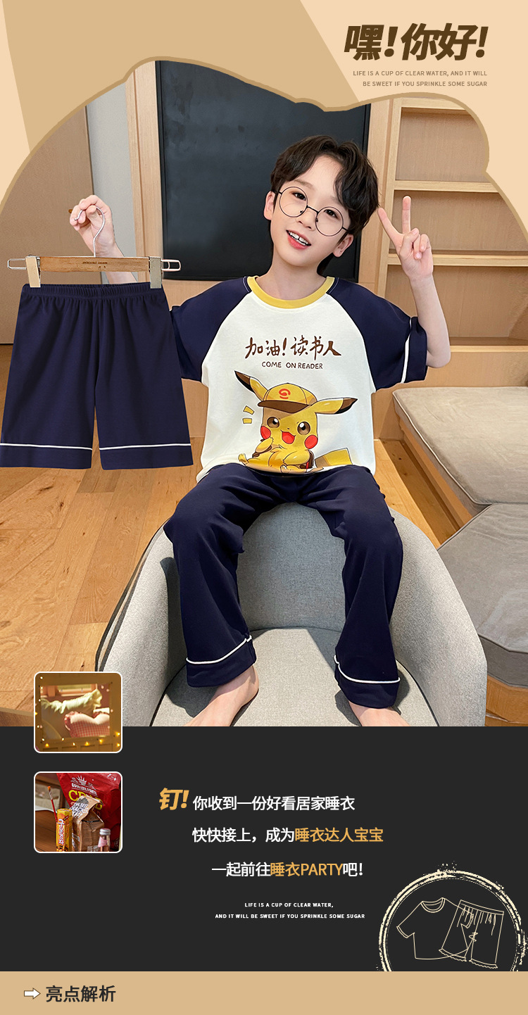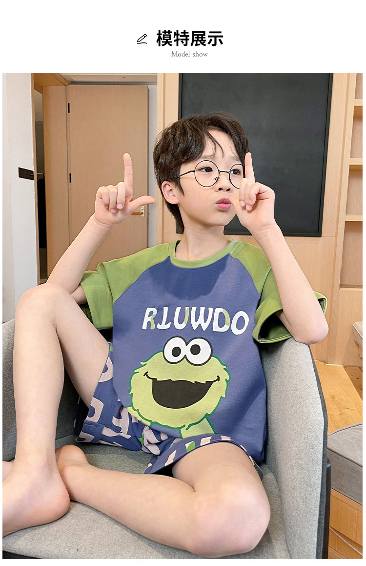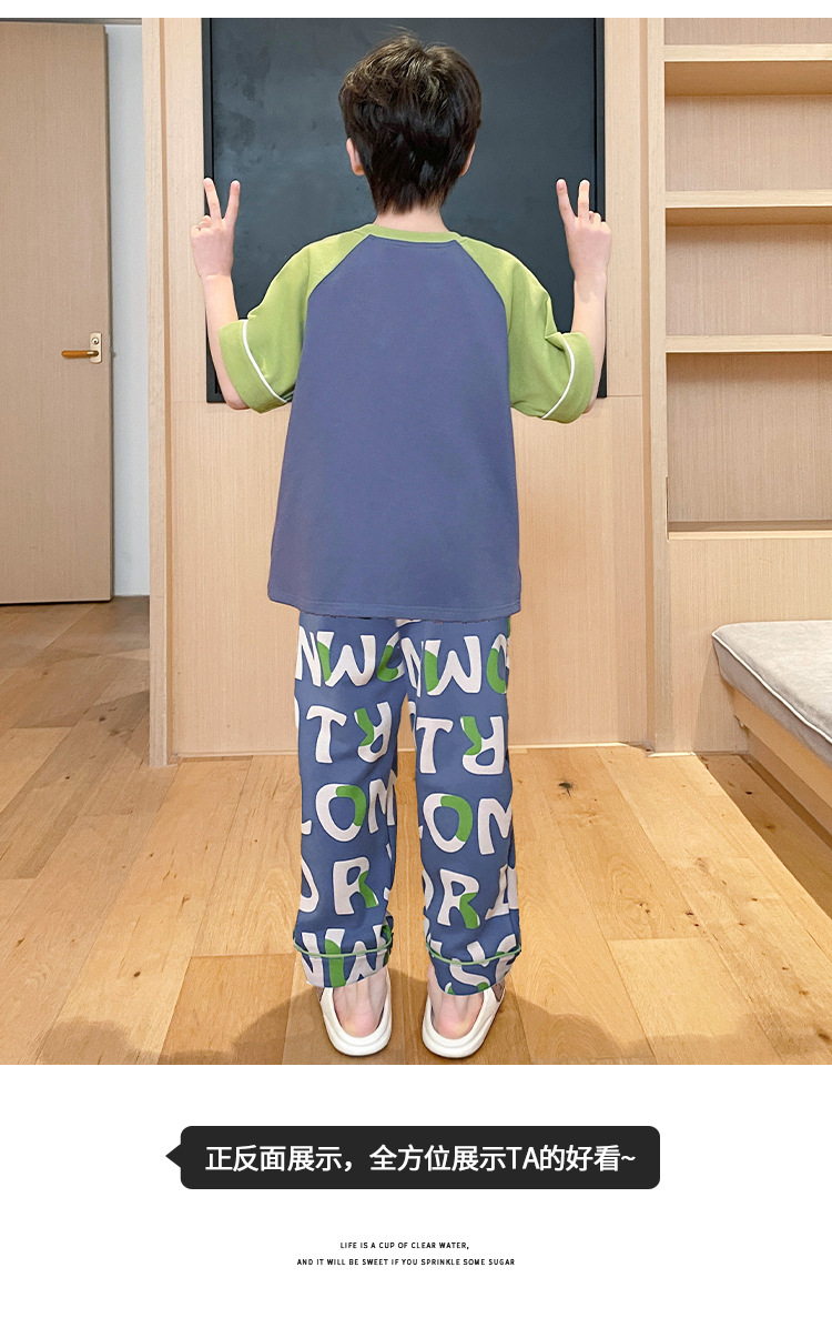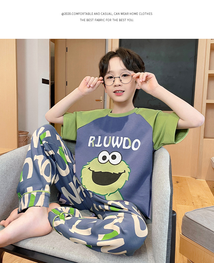 남학생 잠옷 여름면 반팔 바지 3 종 세트 어린이 소년 중 · 대형 청소년 여름 가정 옷