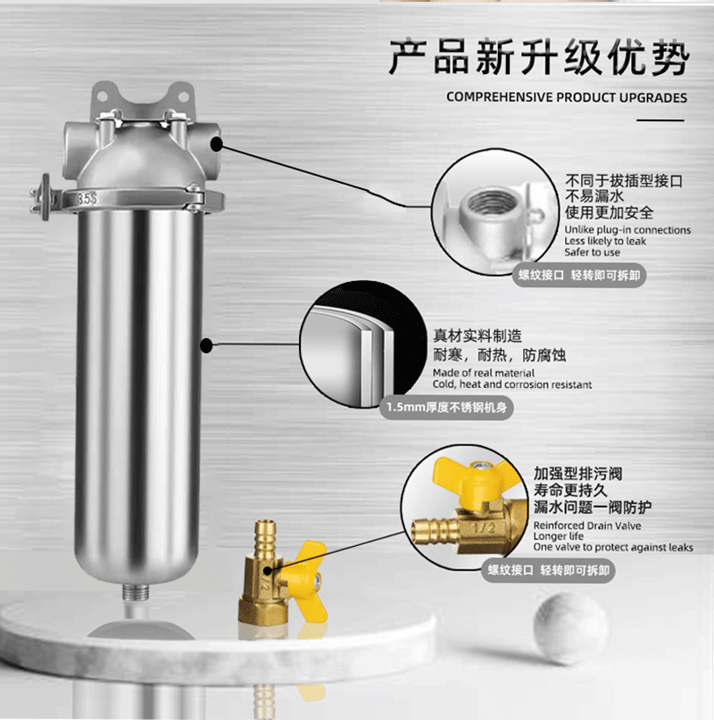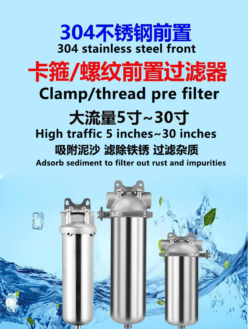 304 스테인레스 스틸 프리 필터 골드 하우스 대형 플로우 클램프 유형 큰 지방 스테인레스 스틸 프리 필터 도매스토어 가기