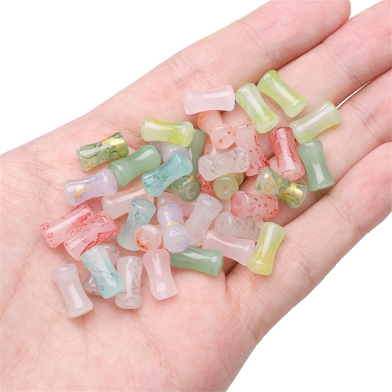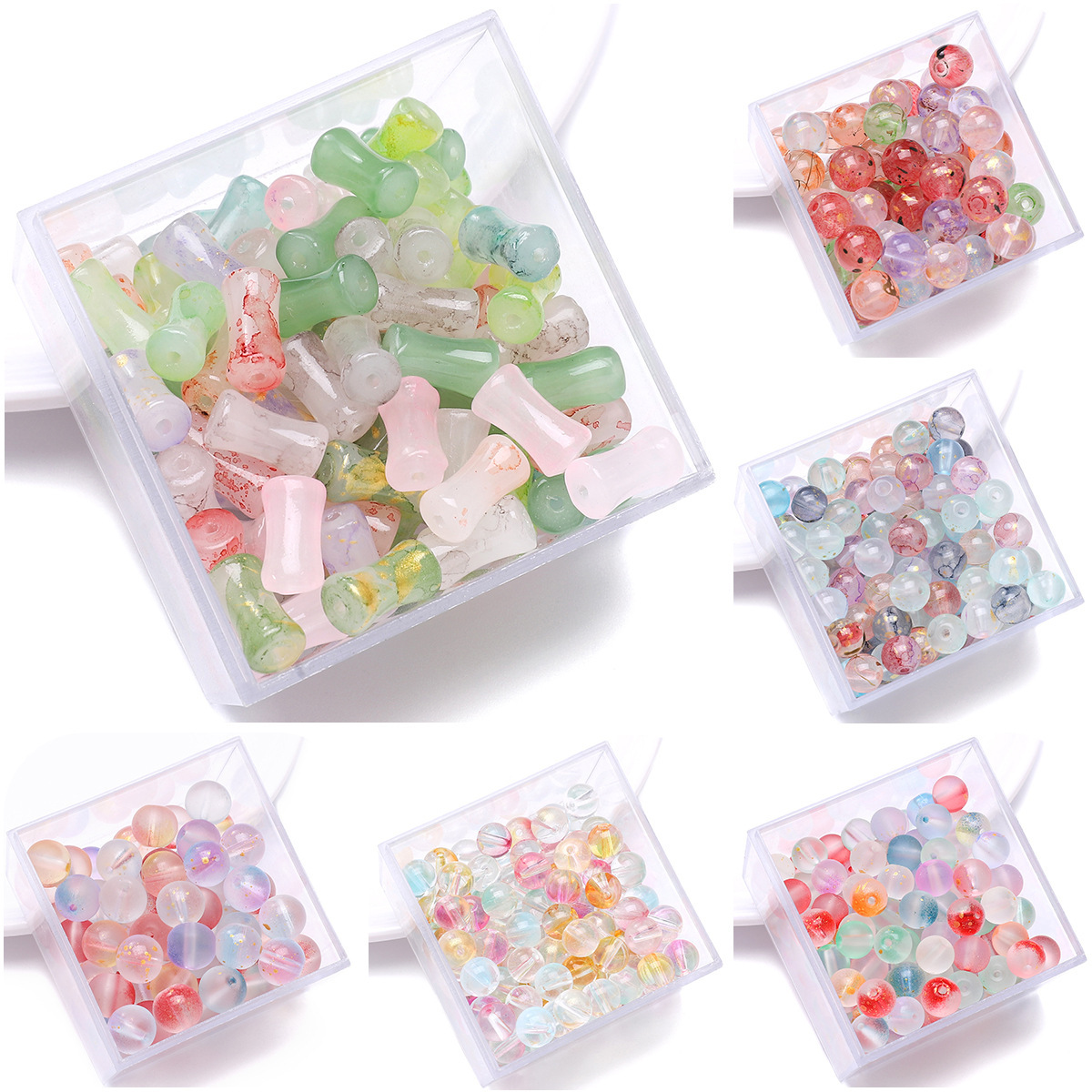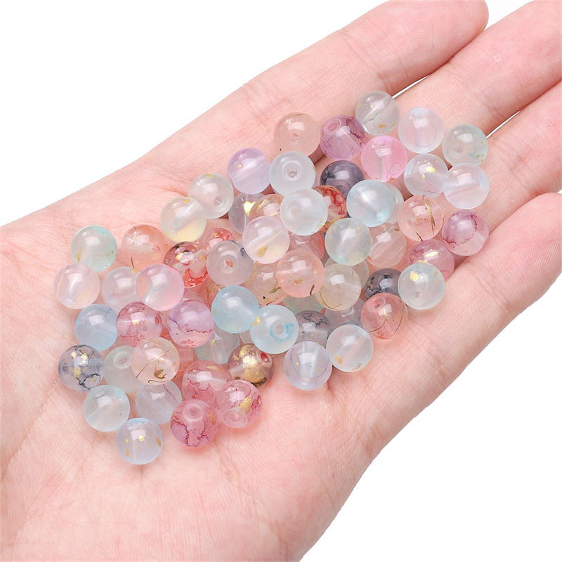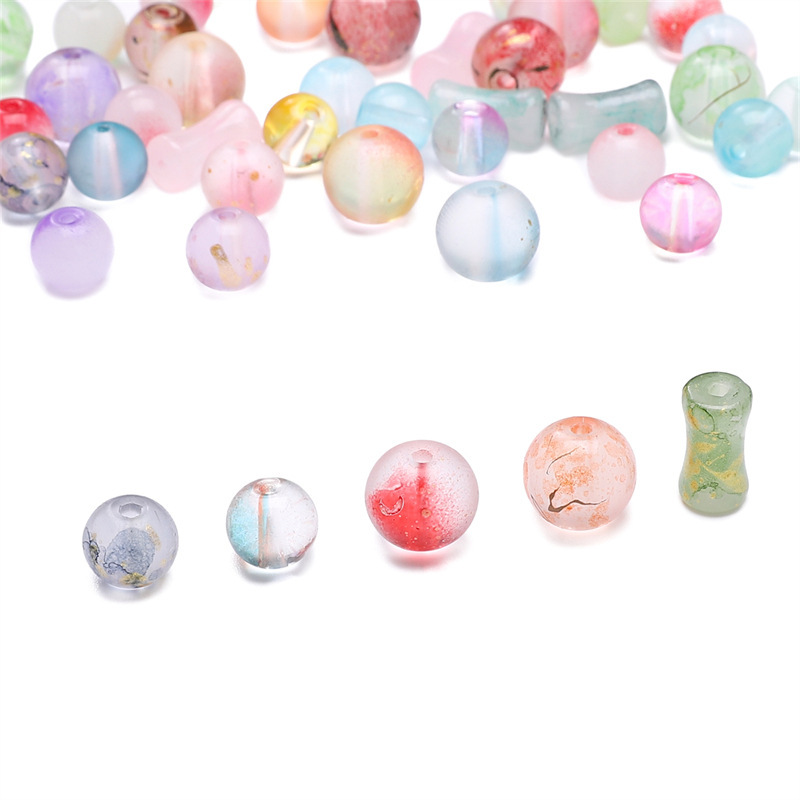 유리 얼음 투명 잉크 피는 금 구슬 느슨한 구슬 수제 DIY 대나무 팔찌 머리 장식 소재 보석 액세서리