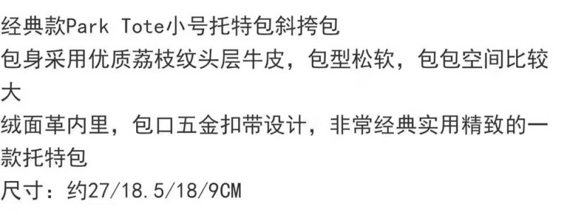 TR 2024 뉴 파크 토트 백 정품 가죽 캐주얼 올 매치 핸드 헬드 숄더 백 클래식 뉴 토트 여성용 가방스토어 가기