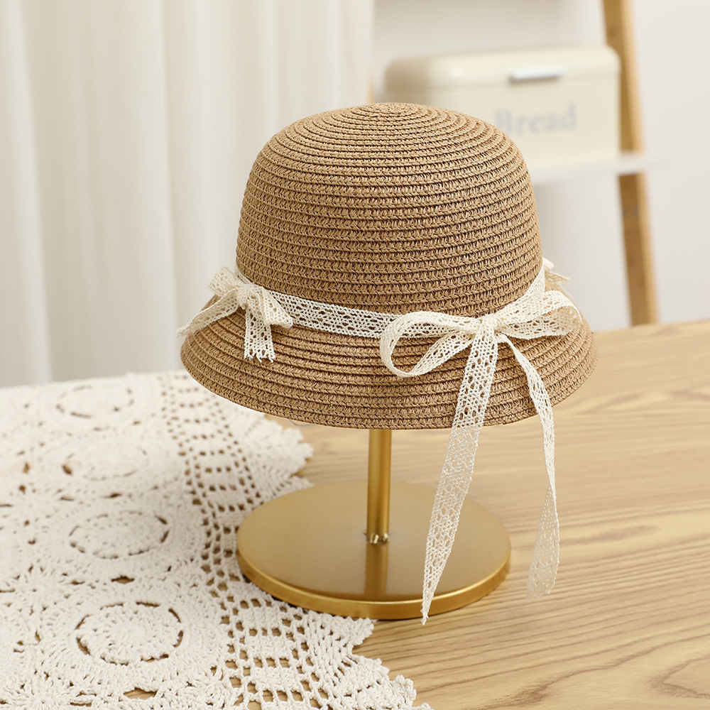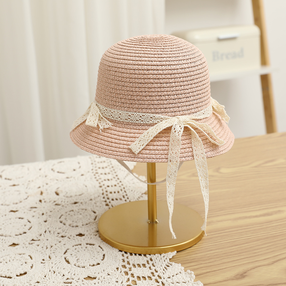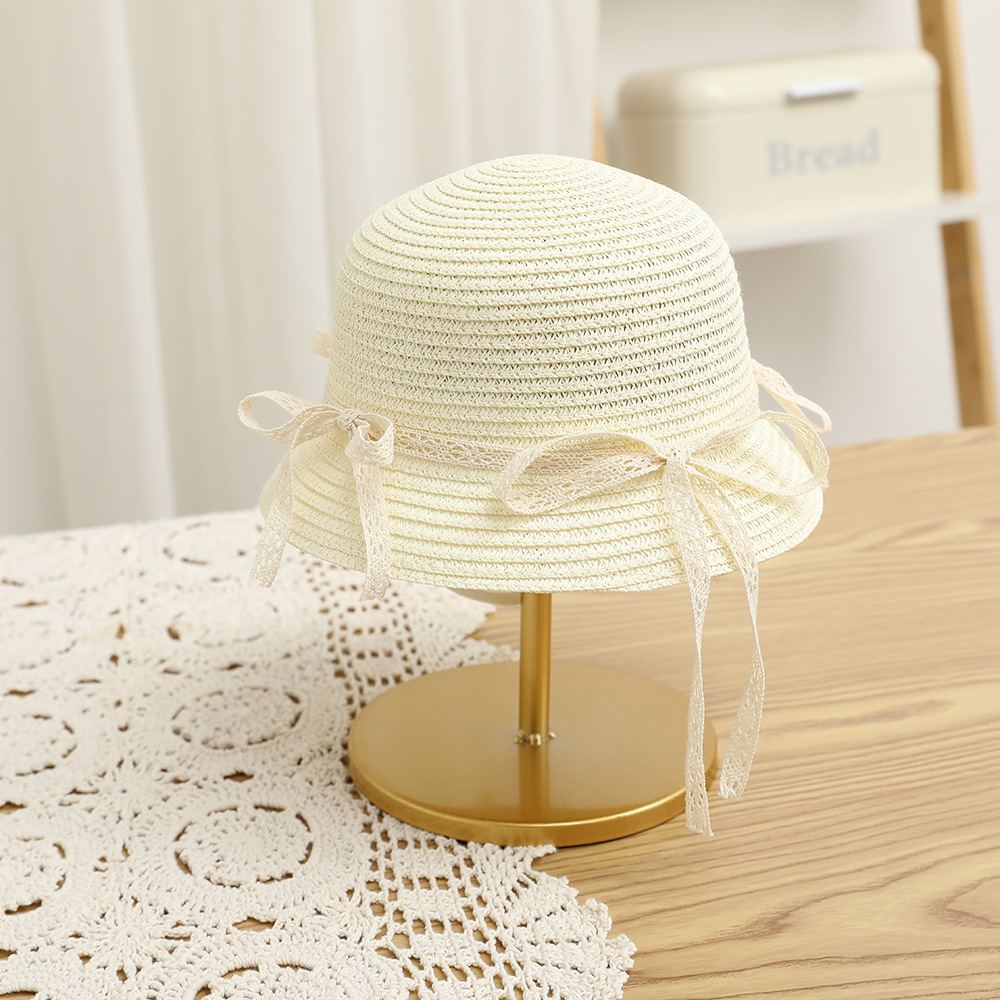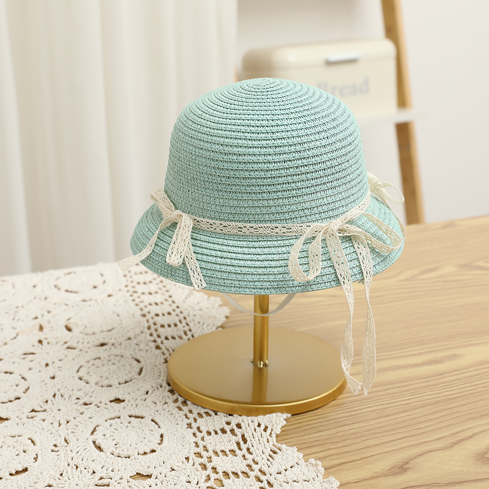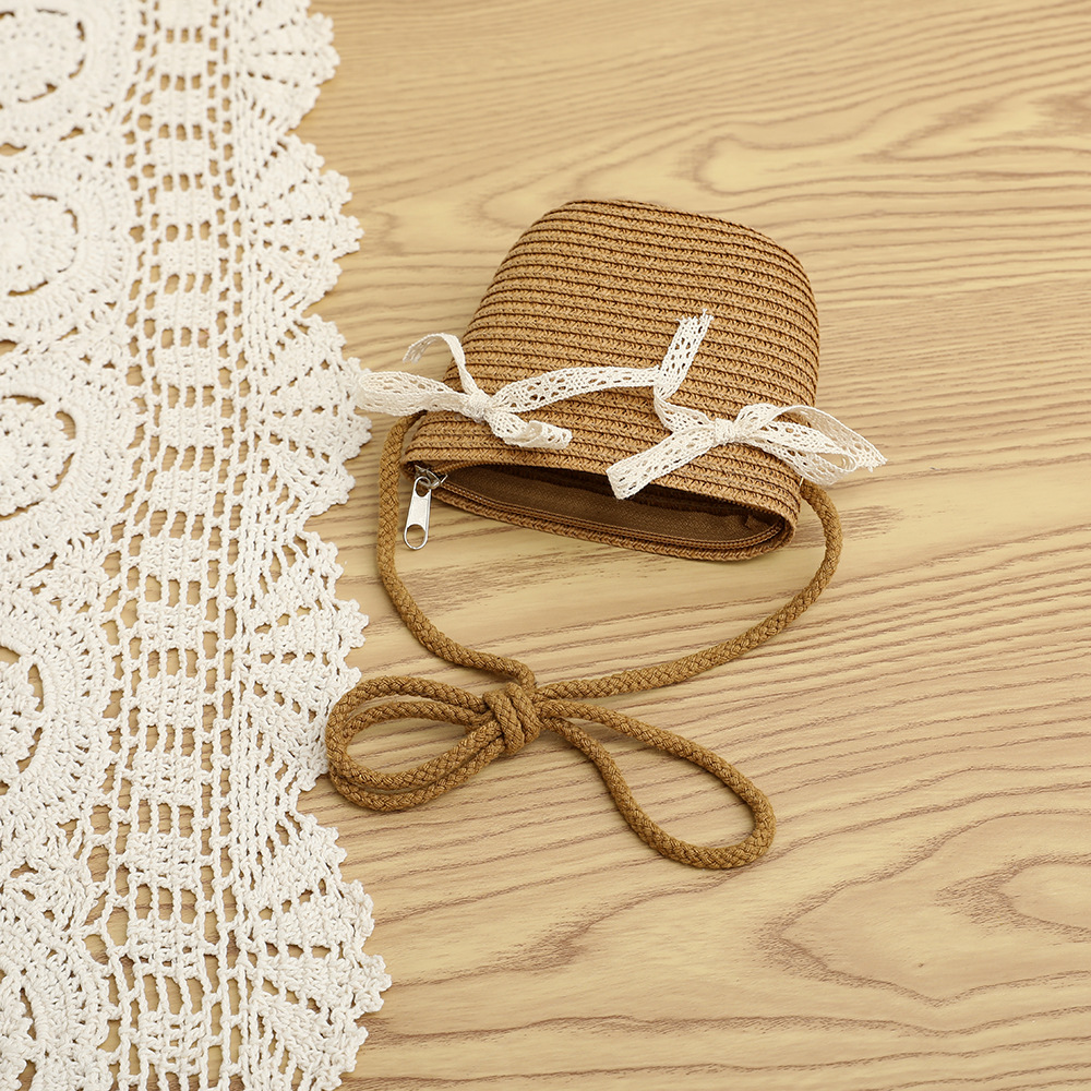 여름 어린이 밀짚 모자 물결 레이스 밀짚 모자 가방 2 종 세트 외국식 귀여운 나비 선 스크린 태양 모자