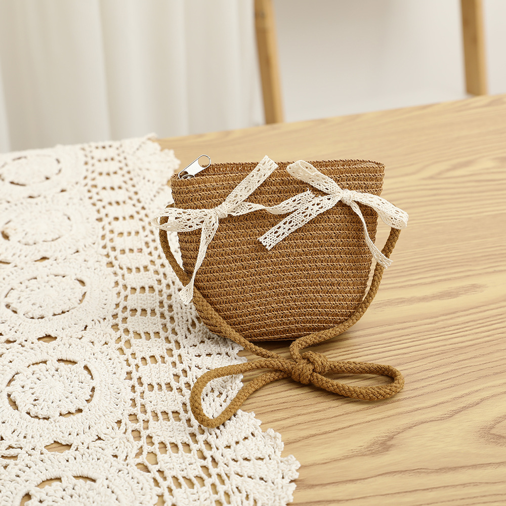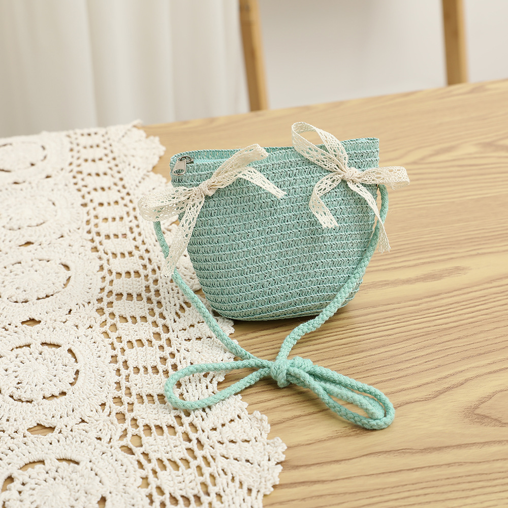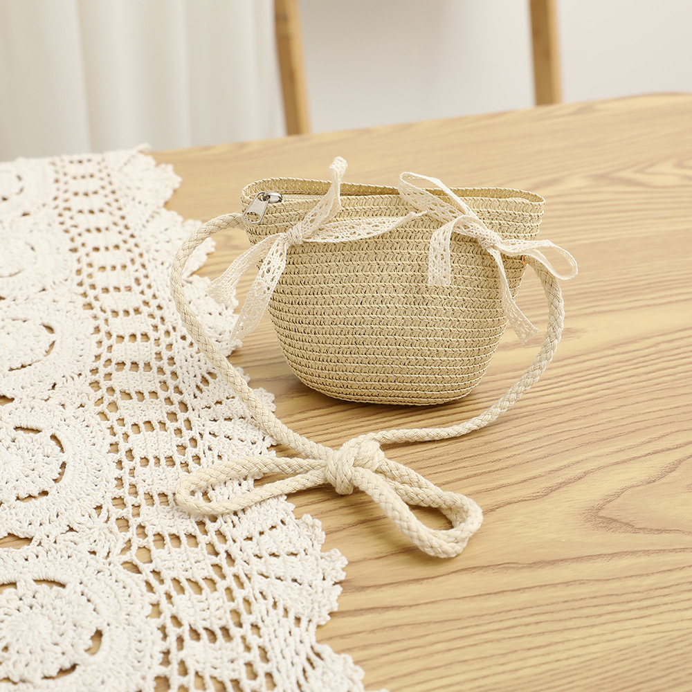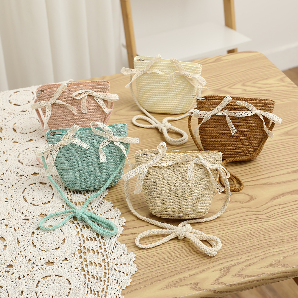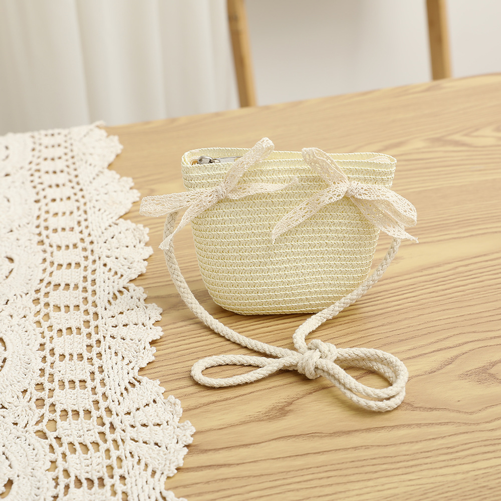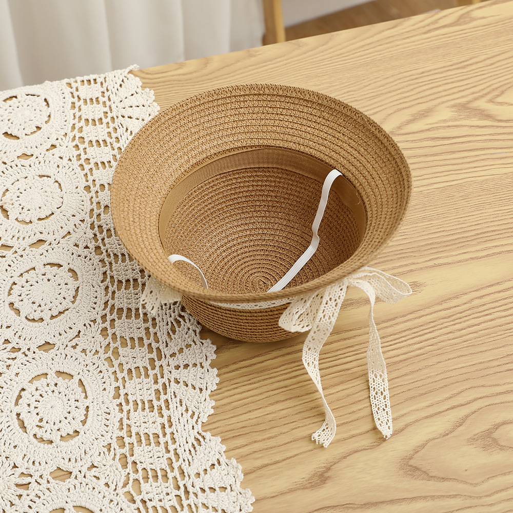 여름 어린이 밀짚 모자 물결 레이스 밀짚 모자 가방 2 종 세트 외국식 귀여운 나비 선 스크린 태양 모자