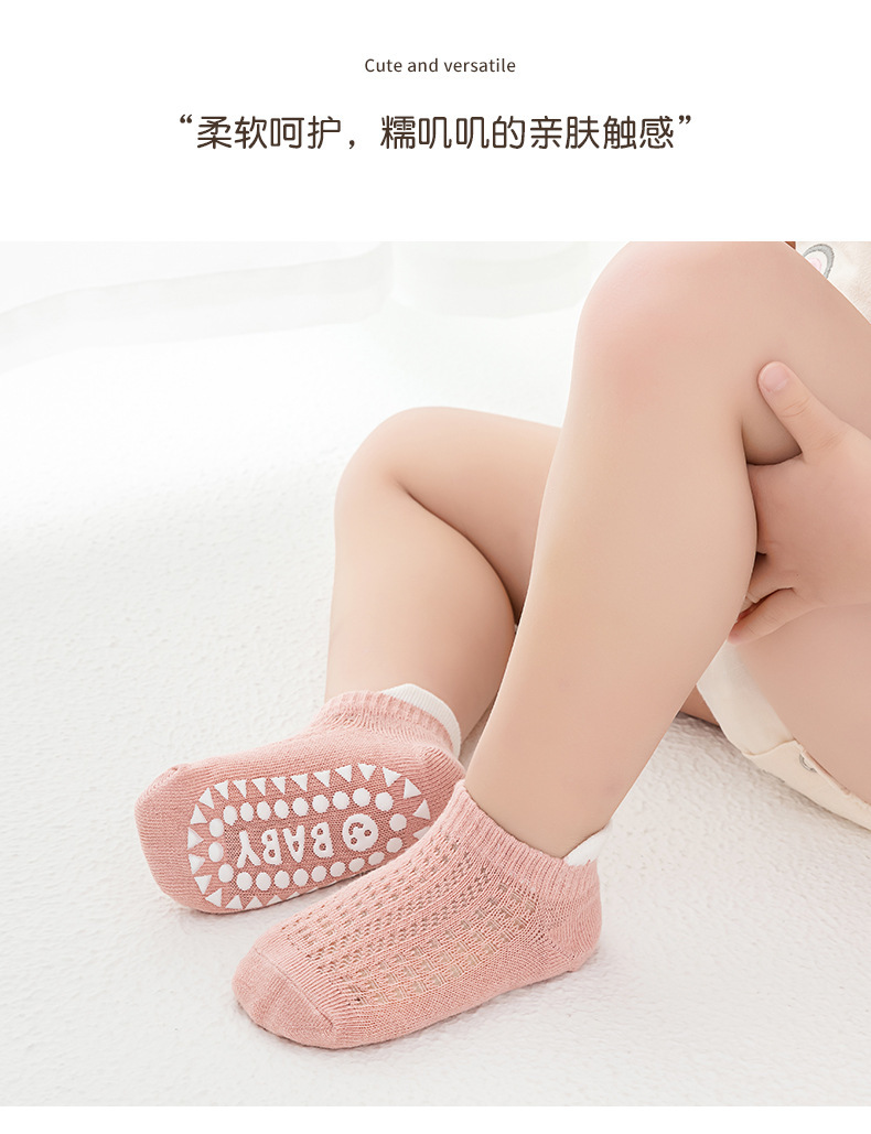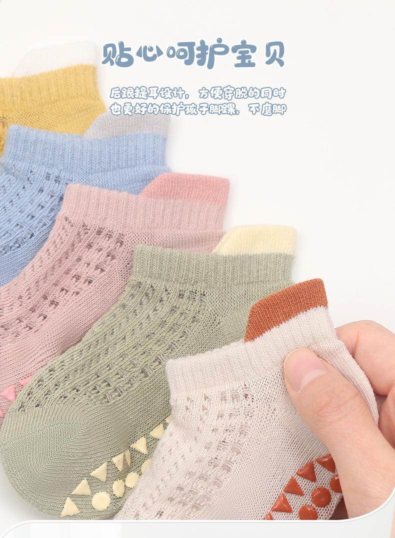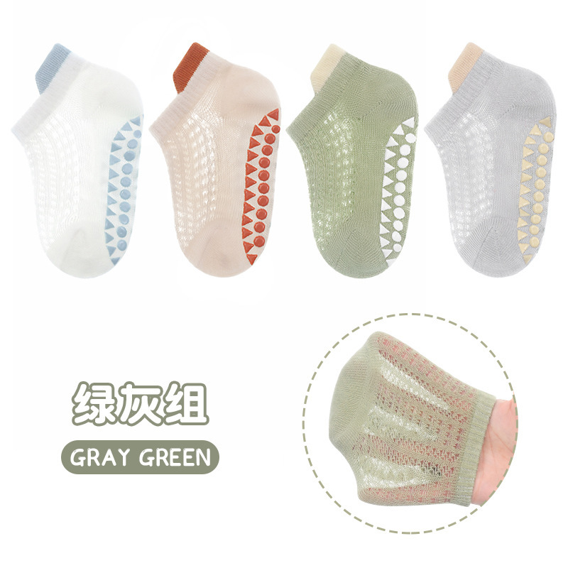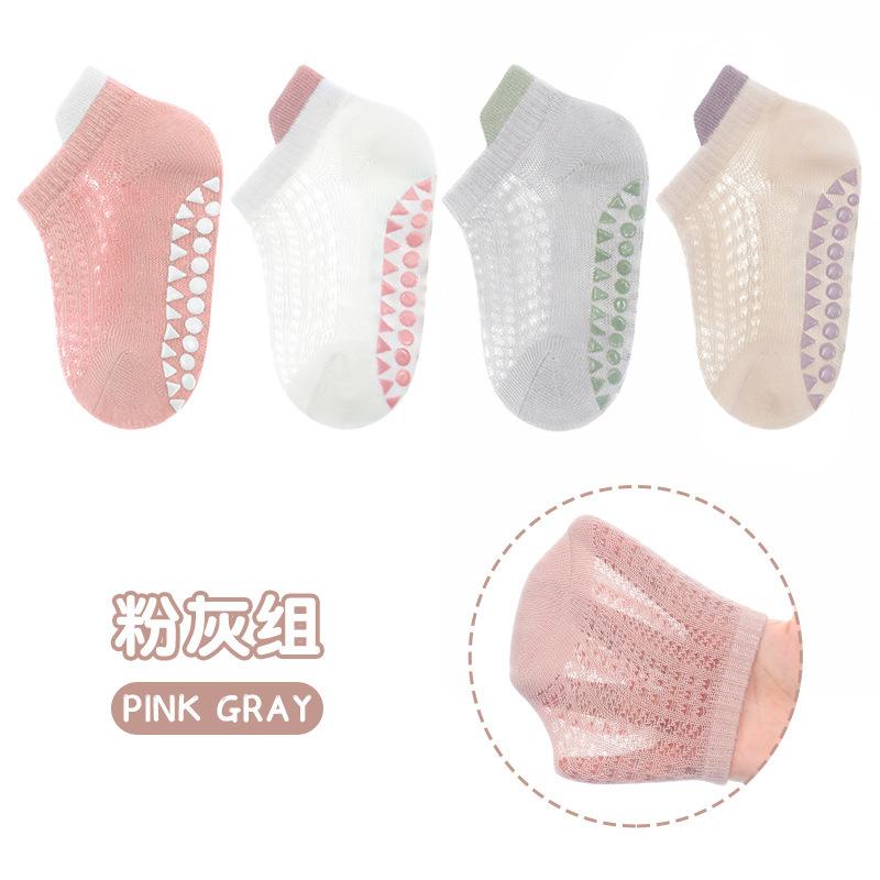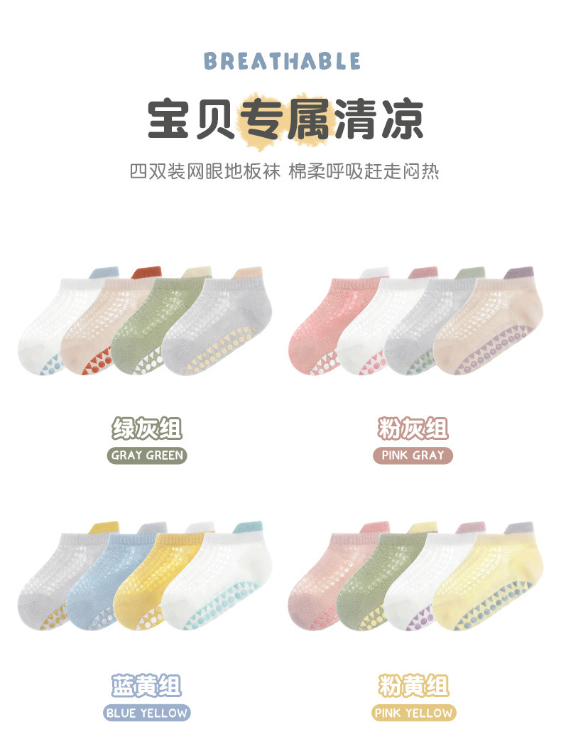2024 얇은 면 미끄럼 방지 아기 트램폴린 양말 어린이 바닥 양말 4 쌍의 웃는 얼굴 분배 메쉬 보트 양말스토어 가기