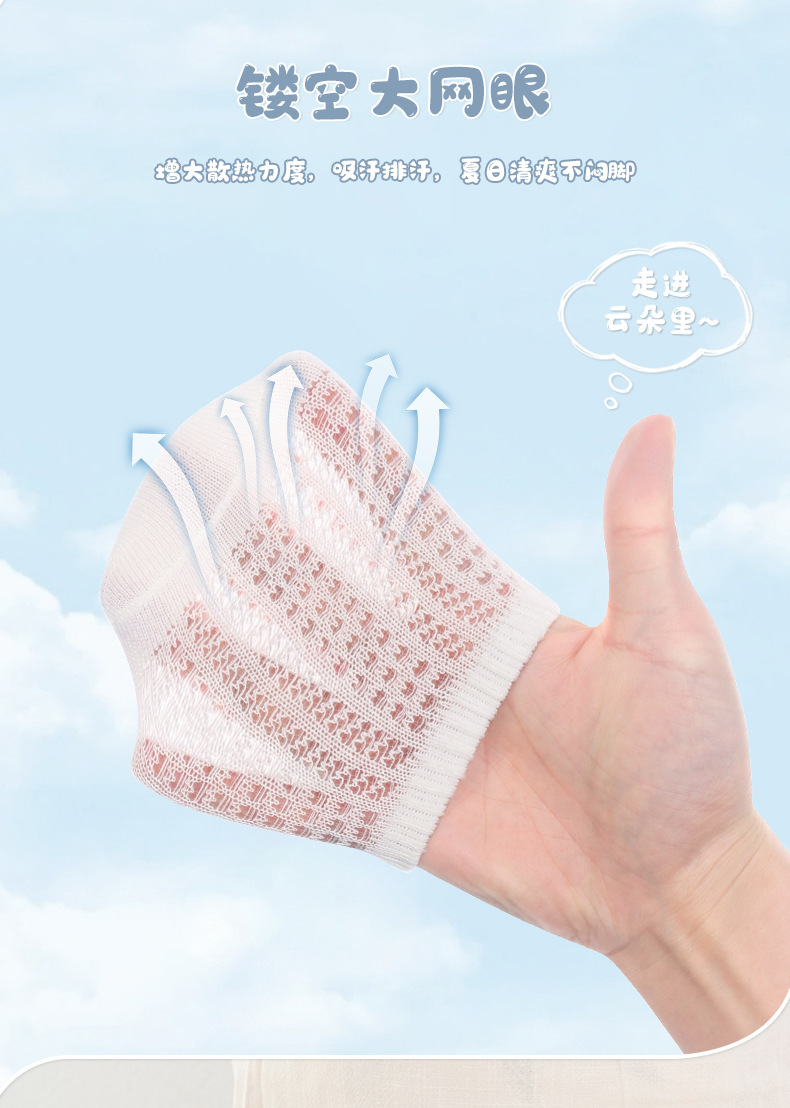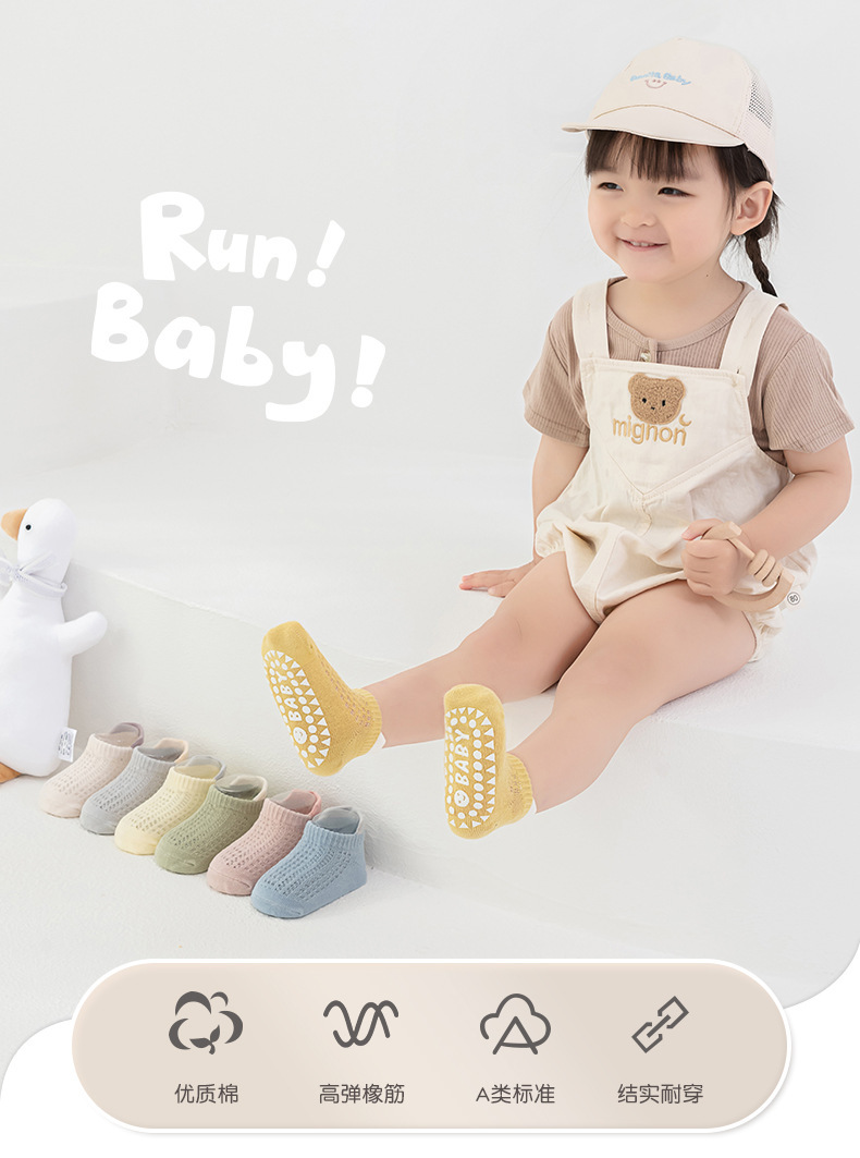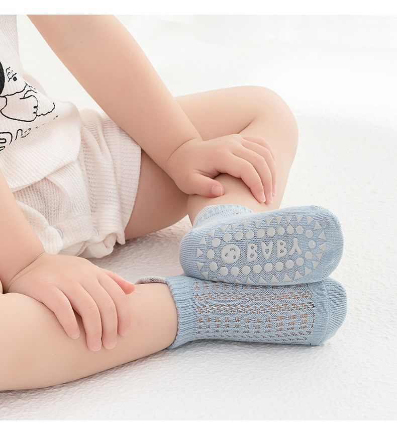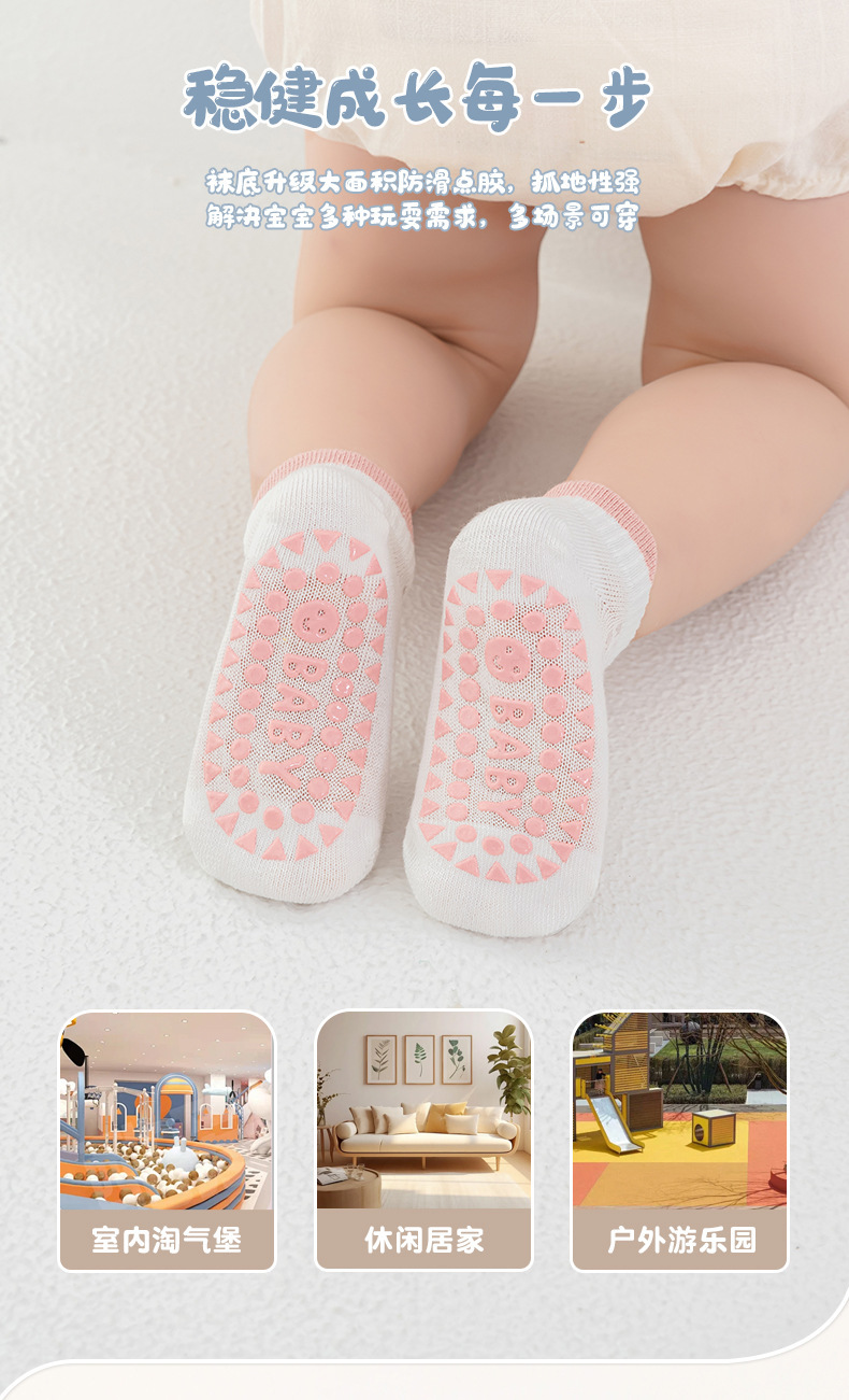 2024 얇은 면 미끄럼 방지 아기 트램폴린 양말 어린이 바닥 양말 4 쌍의 웃는 얼굴 분배 메쉬 보트 양말스토어 가기
