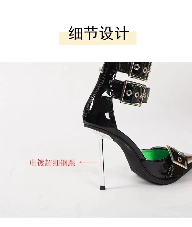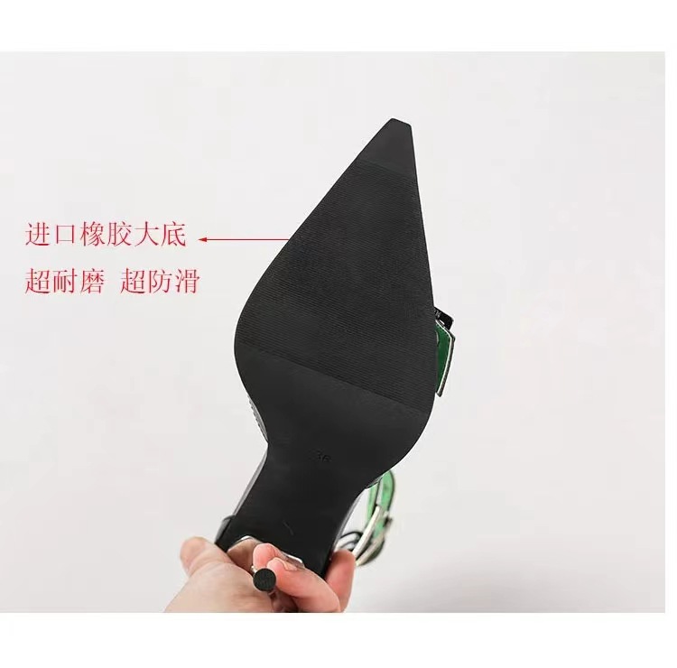 뾰족한 바오터우 할로우 힐샌들 여자 2024 년 여름 새 스틸레토 힐 벨트 버클 로얄 자매 스타일 하이힐스토어 가기