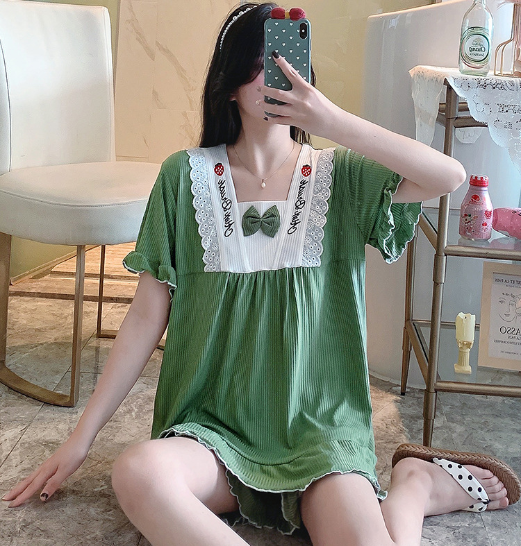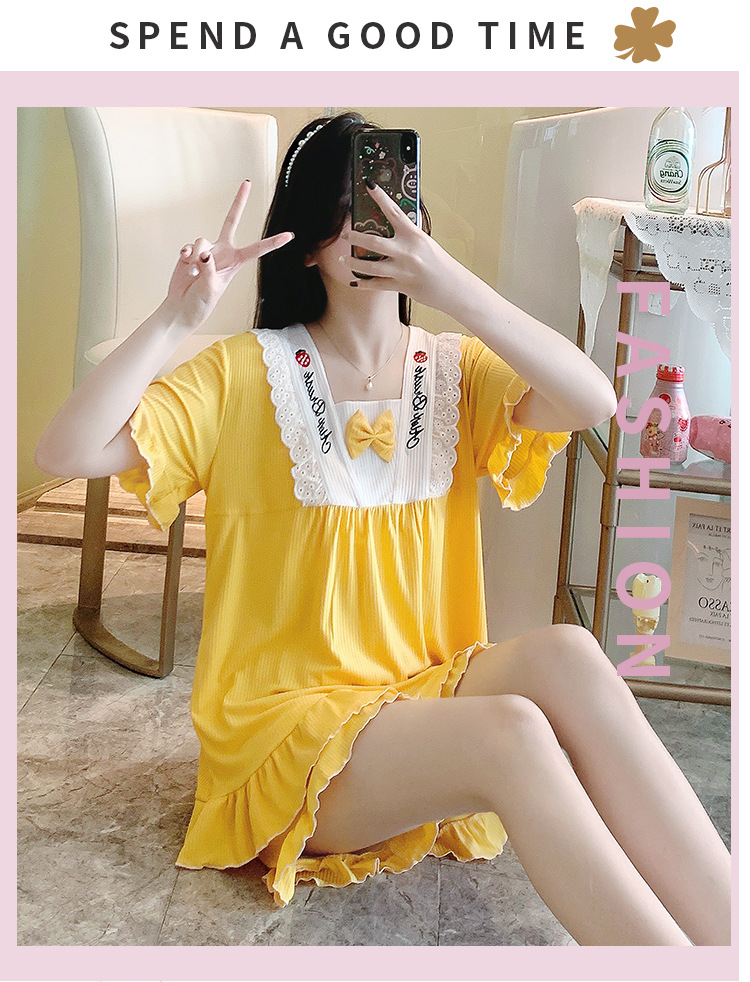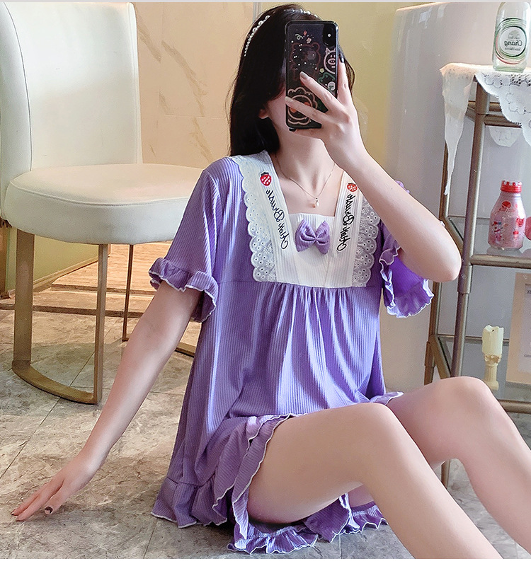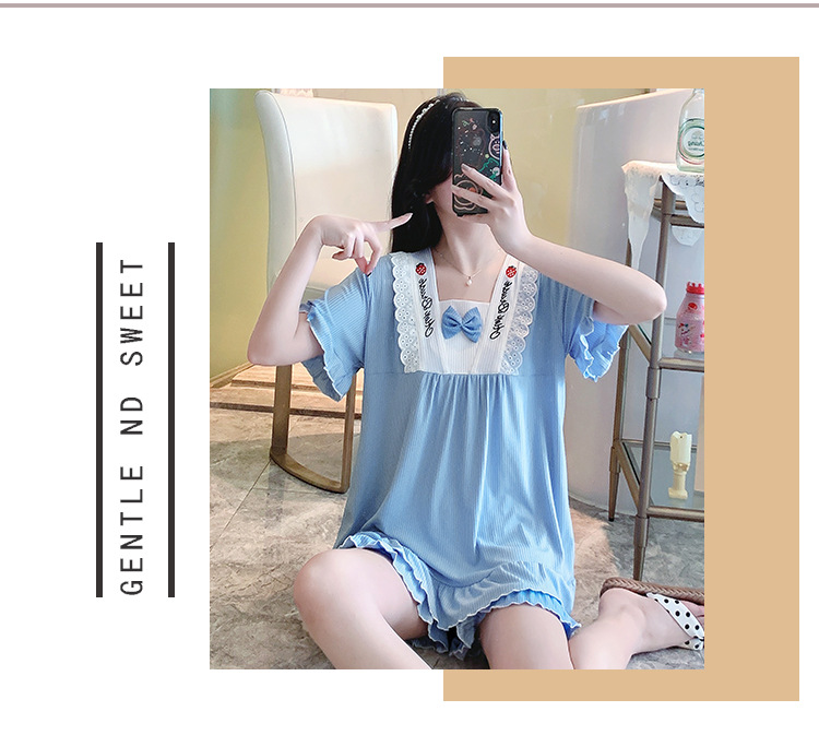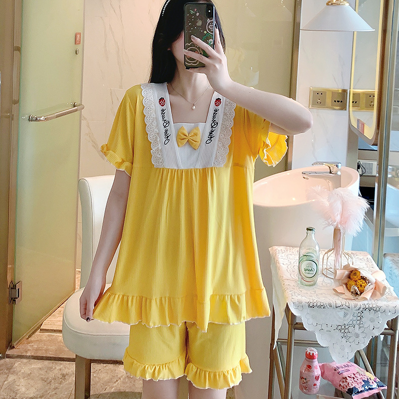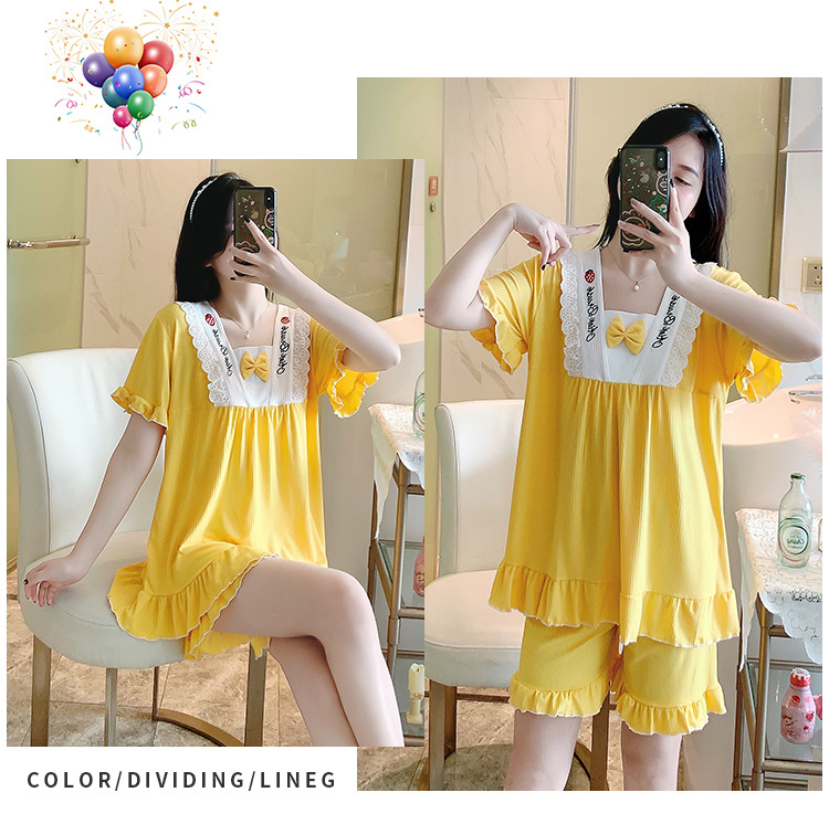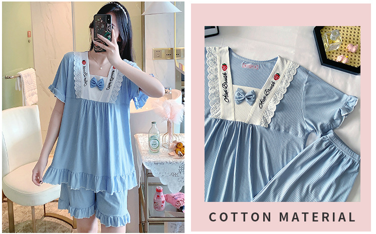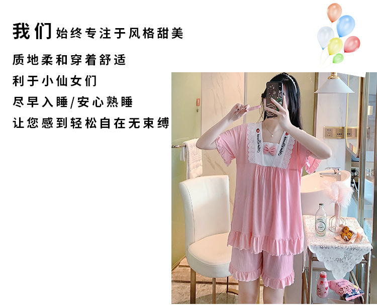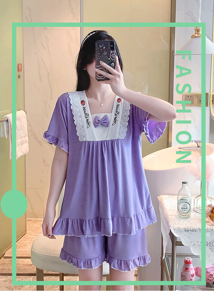 국경 간 파자마 여성 여름 얇은 반팔 2024 새로운 달콤한 공주 스타일 플러스 사이즈 느슨한 홈 의류 세트스토어 가기