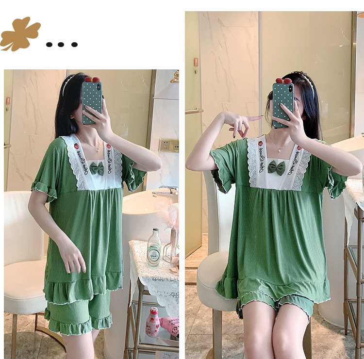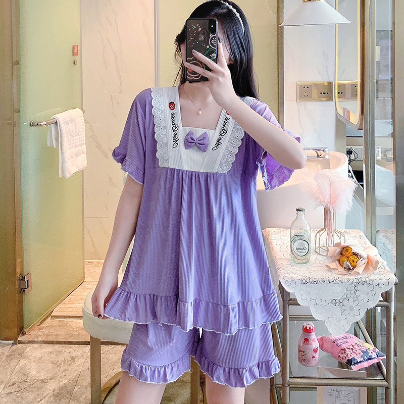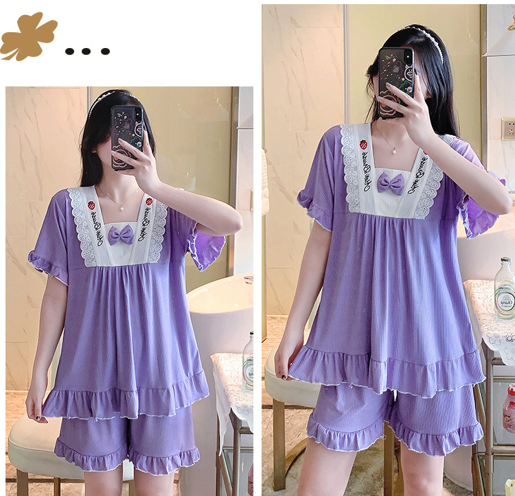 국경 간 파자마 여성 여름 얇은 반팔 2024 새로운 달콤한 공주 스타일 플러스 사이즈 느슨한 홈 의류 세트
