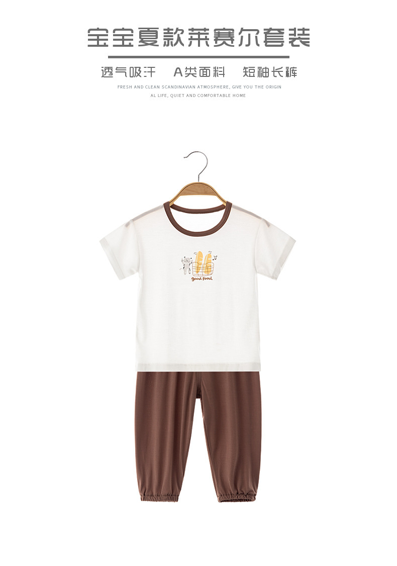 아기 얇은 조끼 세트 초박형 Lyocell 파자마 여름 어린이 반바지 느슨한 아기 에어컨 스님 세트스토어 가기