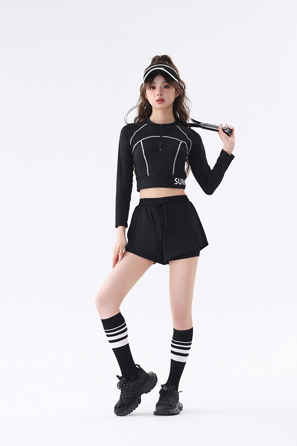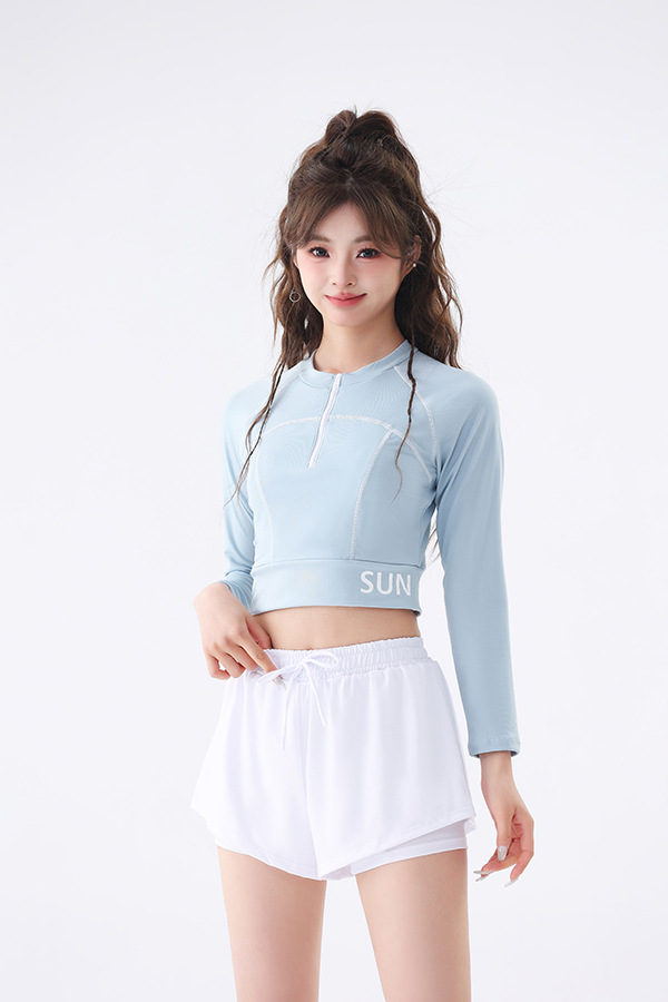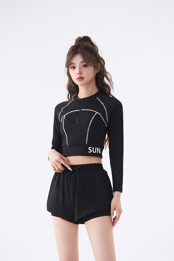 긴팔 수영복 여성 보수 분할 2024 수업 슬리밍 온천 수영복에서 배를 덮는 새로운 고급 감각 학생스토어 가기