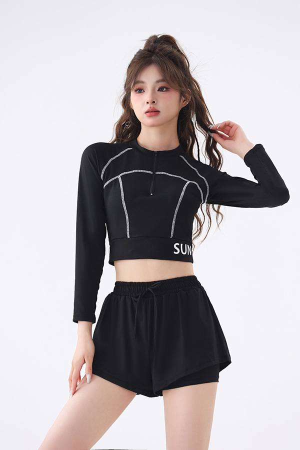 긴팔 수영복 여성 보수 분할 2024 수업 슬리밍 온천 수영복에서 배를 덮는 새로운 고급 감각 학생