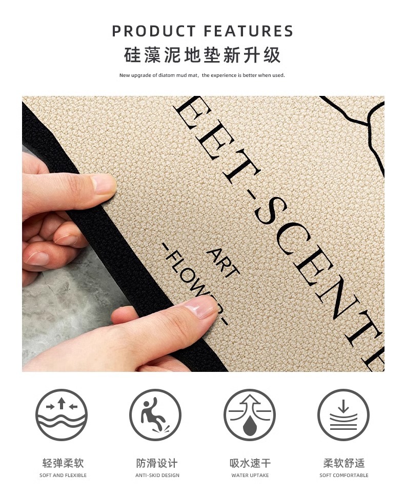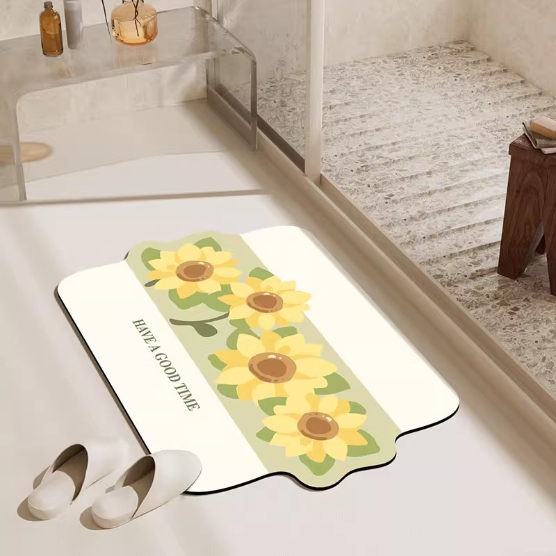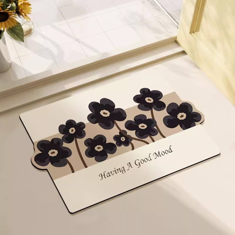 꽃 욕실 바닥 매트 흡수성 빠른 건조 미끄럼 방지 더러운 문 매트 가정용 Diatom 진흙 강화 변기 화장실 문