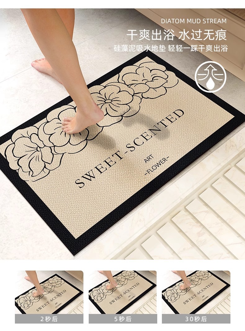 꽃 욕실 바닥 매트 흡수성 빠른 건조 미끄럼 방지 더러운 문 매트 가정용 Diatom 진흙 강화 변기 화장실 문스토어 가기