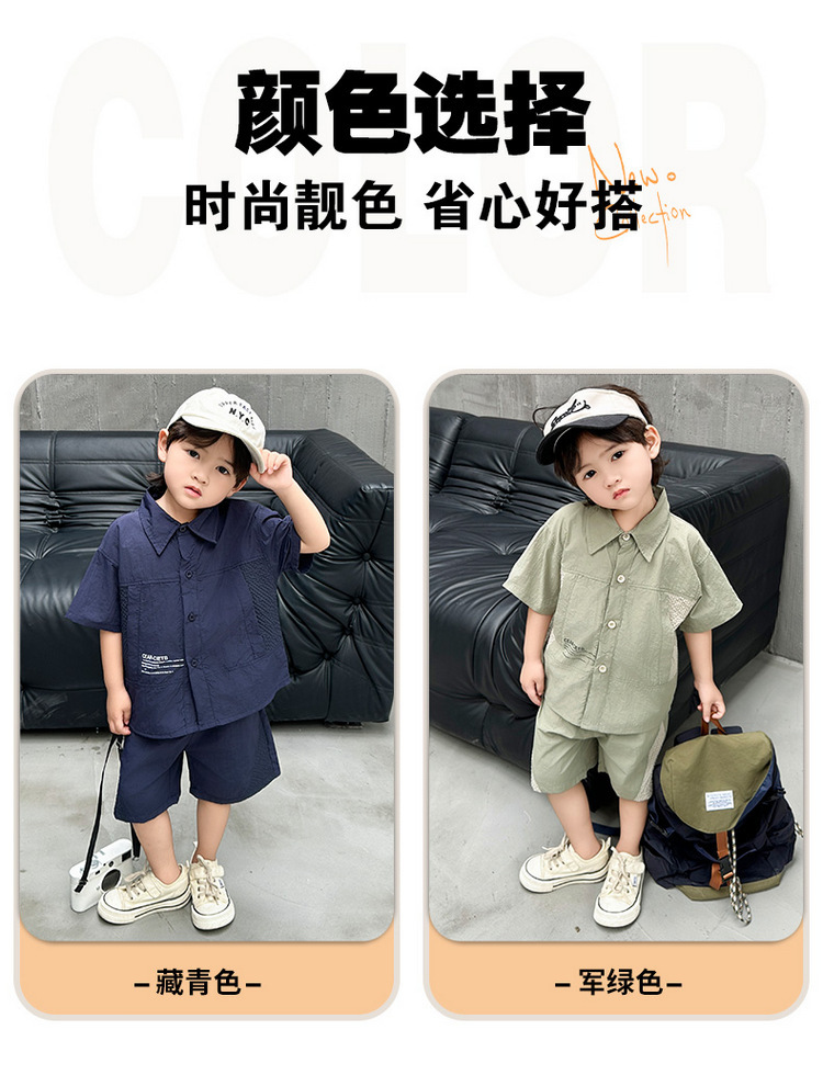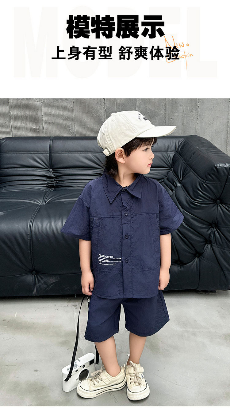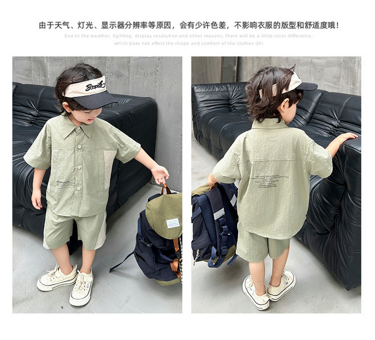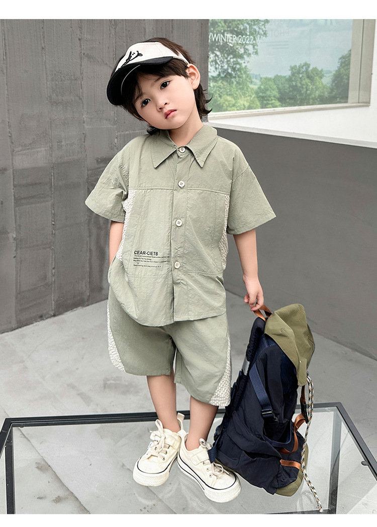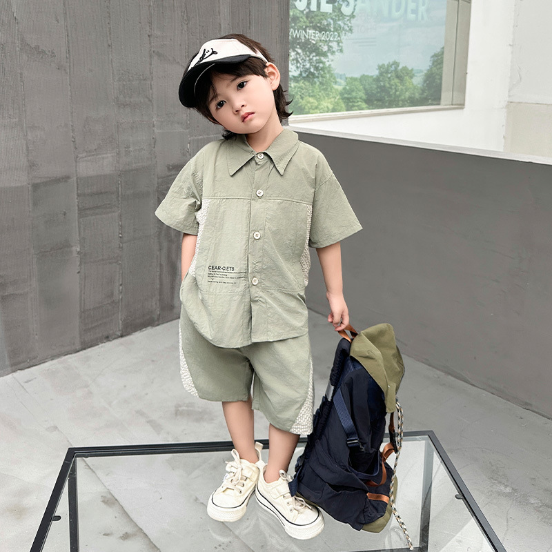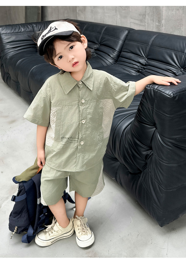 어린이 반팔 셔츠 세트 2024 년 여름 신형 한국식 잘 생긴 소년 '외국인무역 아동복 트렌디'