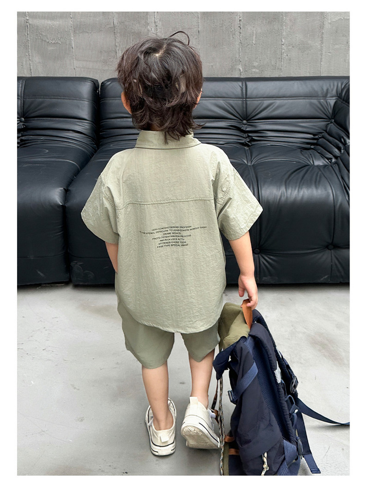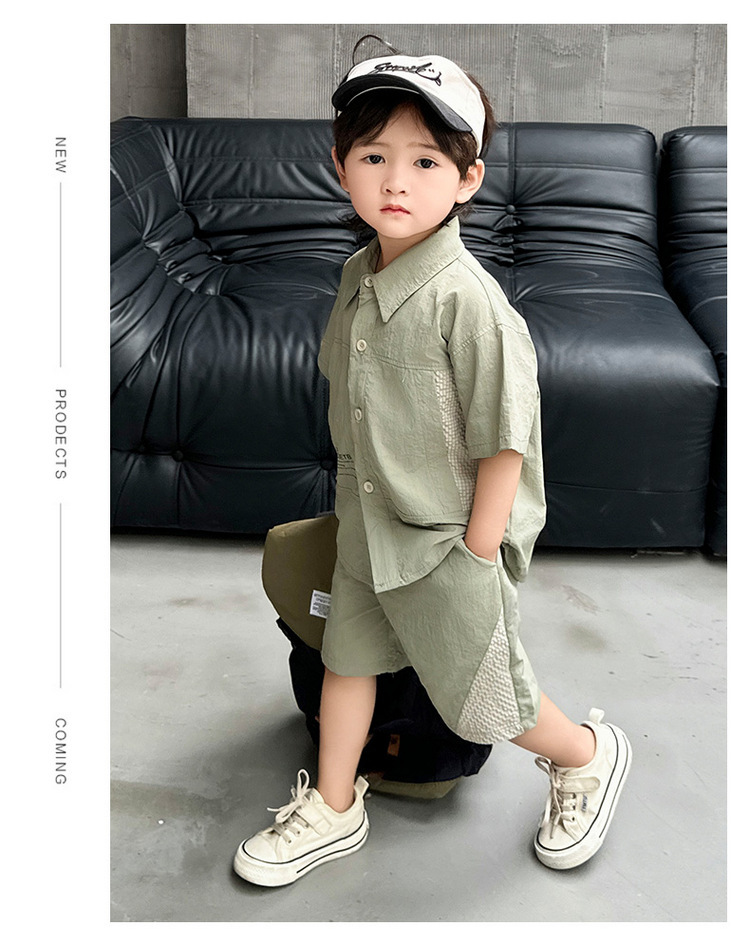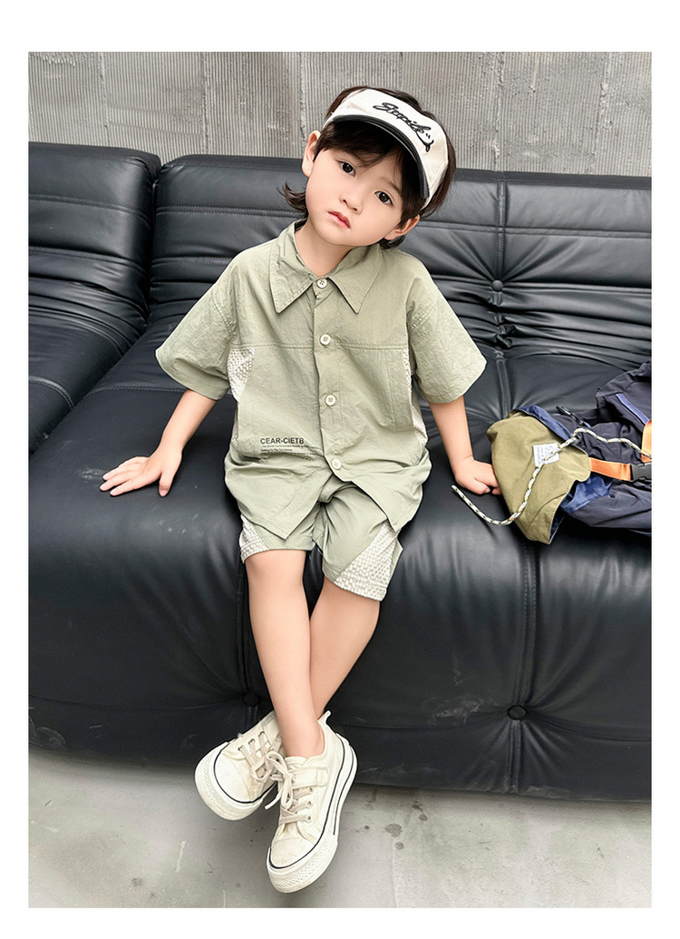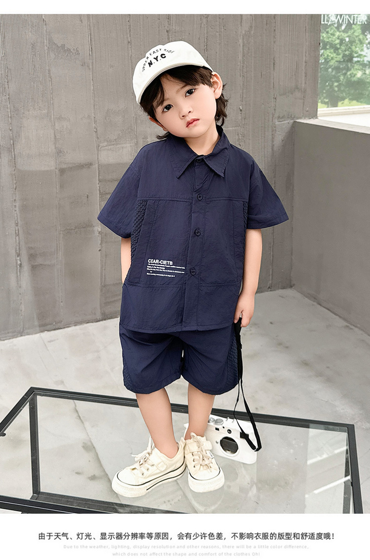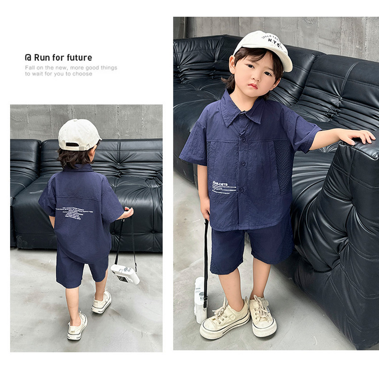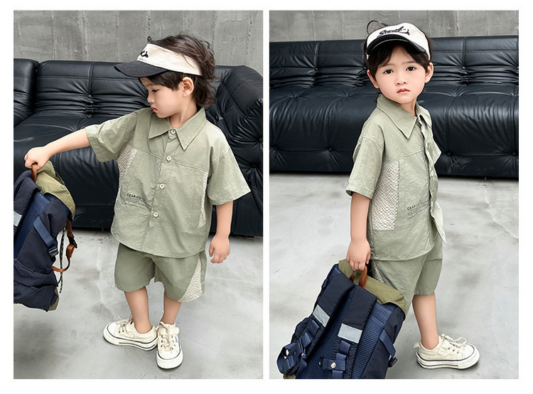 어린이 반팔 셔츠 세트 2024 년 여름 신형 한국식 잘 생긴 소년 '외국인무역 아동복 트렌디'