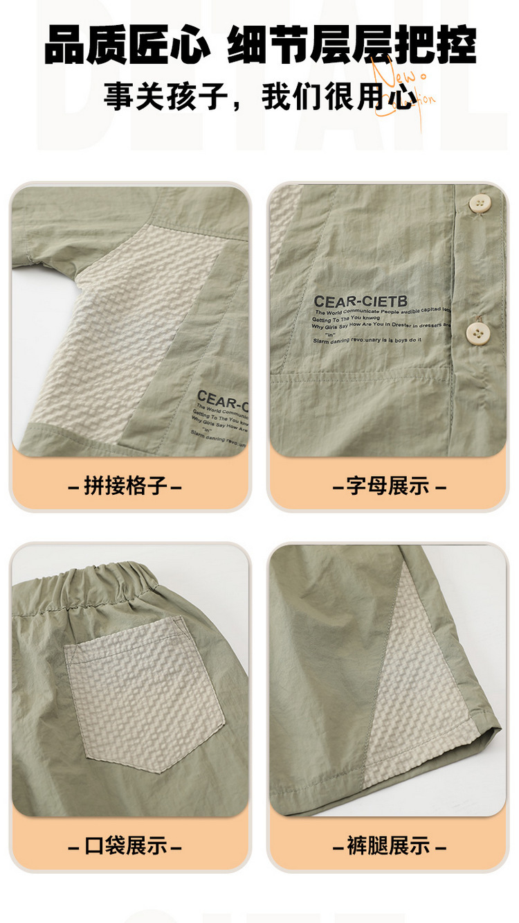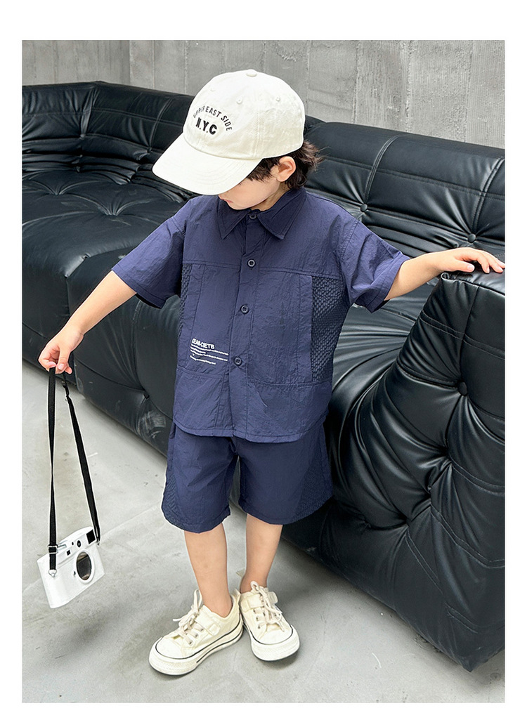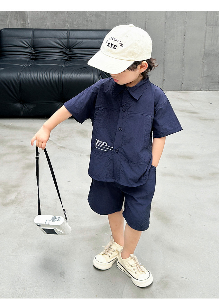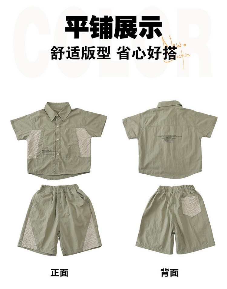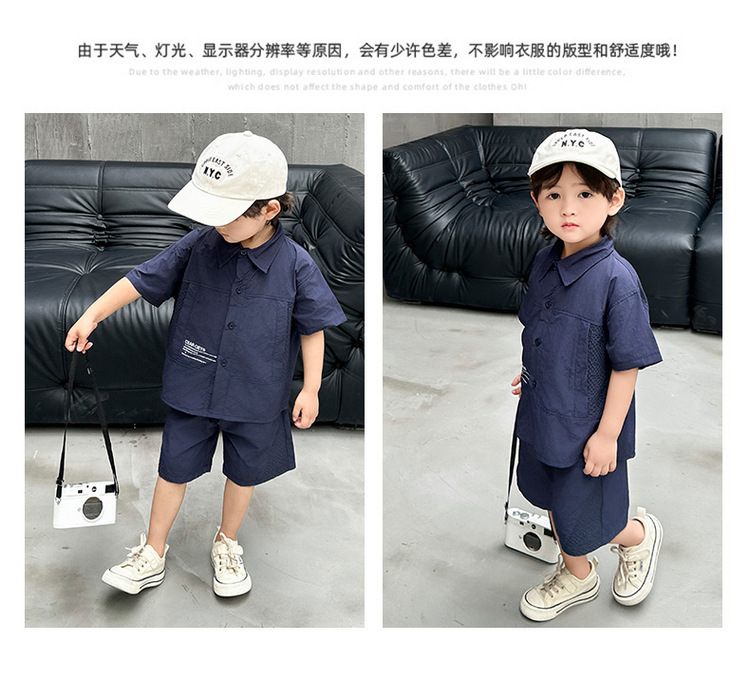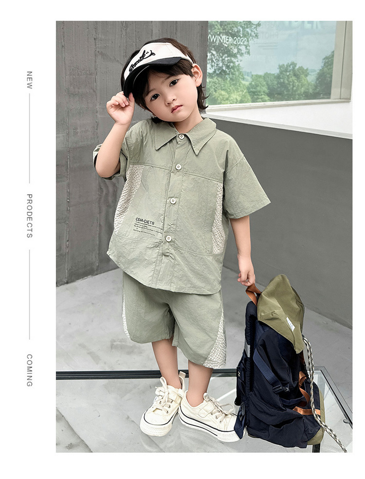 어린이 반팔 셔츠 세트 2024 년 여름 신형 한국식 잘 생긴 소년 '외국인무역 아동복 트렌디'