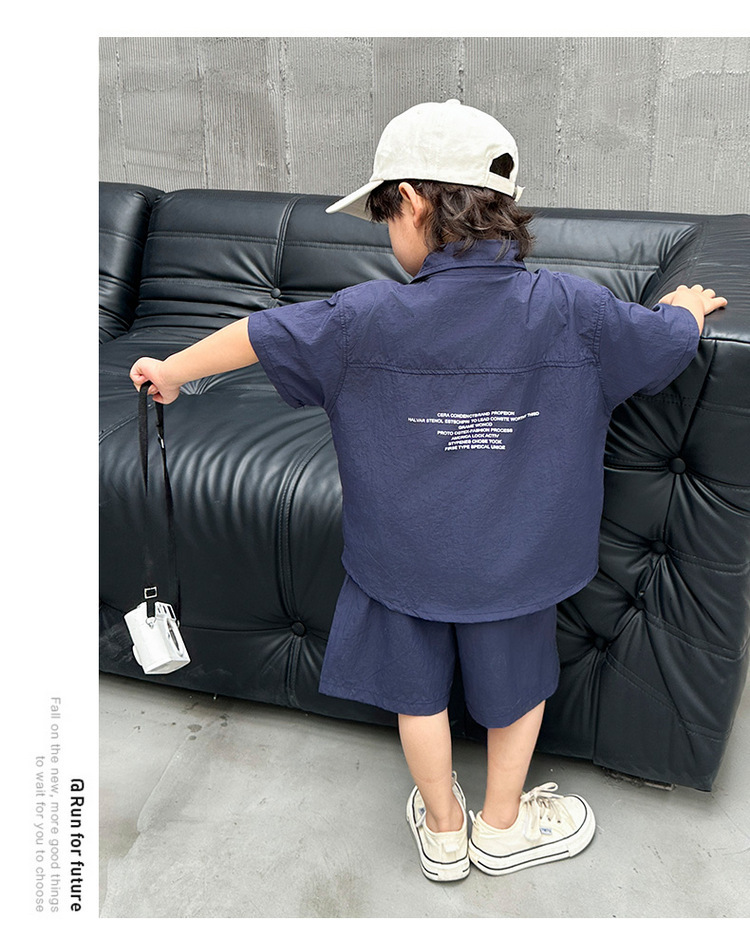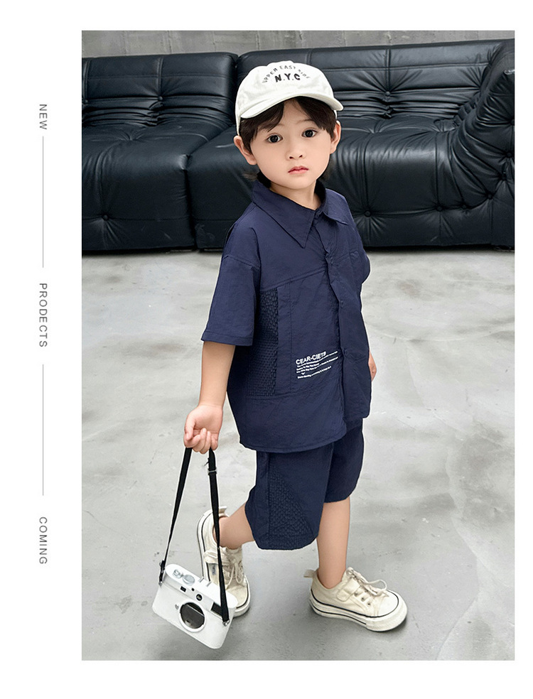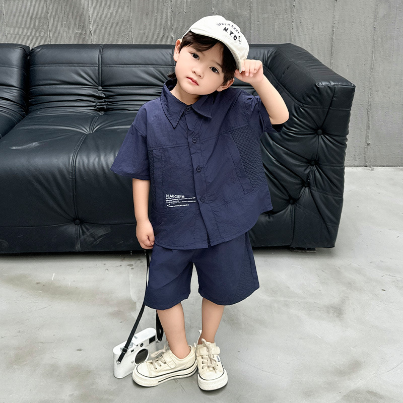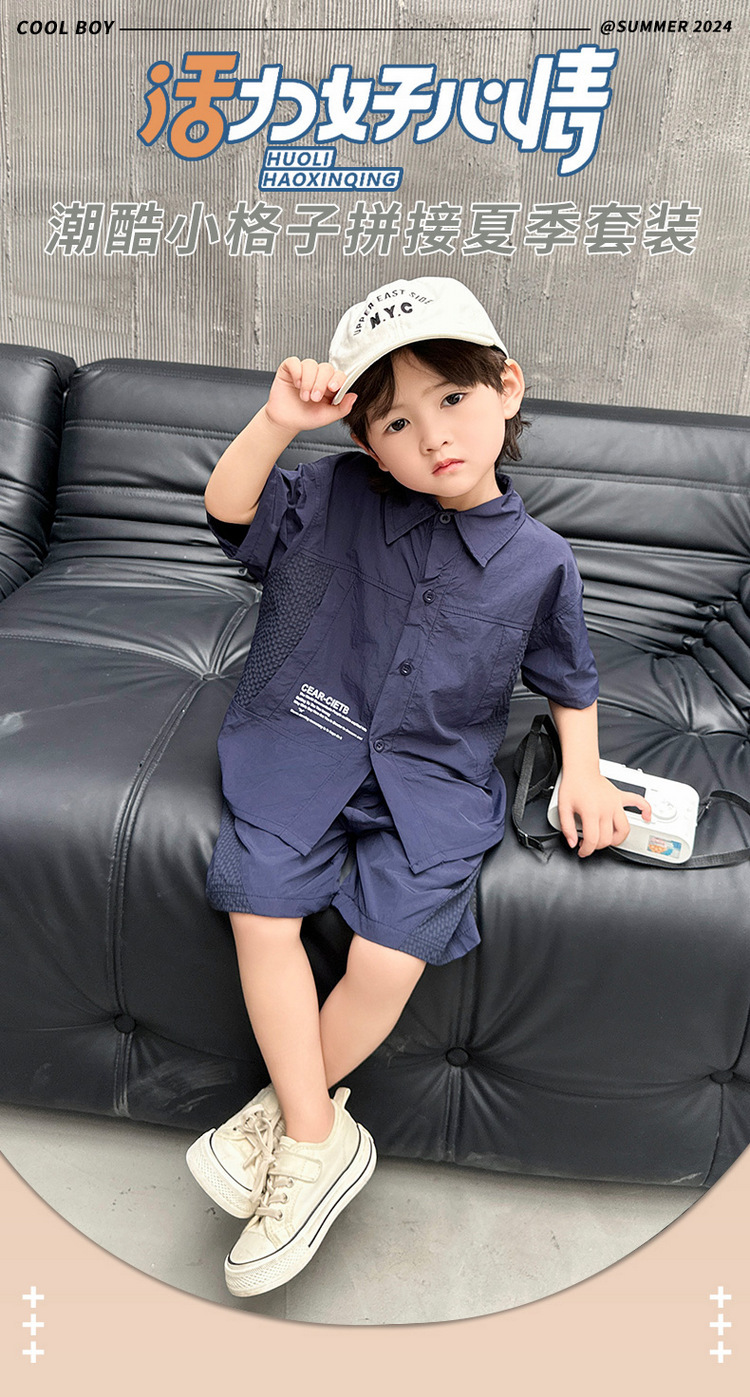어린이 반팔 셔츠 세트 2024 년 여름 신형 한국식 잘 생긴 소년 '외국인무역 아동복 트렌디'스토어 가기