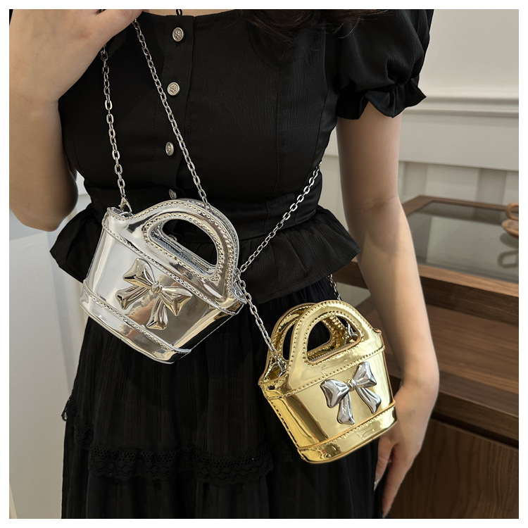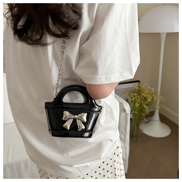 Ins French Niche 미니 어린이 가방 부모 레이저 밝은 얼굴 휴대용 야채 바구니 가방 소녀 크로스 바디 백 트렌디