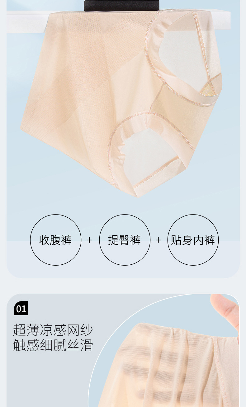 복부 팬티 여성의 얼음 실크 추적없는 높은 허리 엉덩이 고관절 강한 작은 배 여름 얇은 항균 통기성 반바지스토어 가기