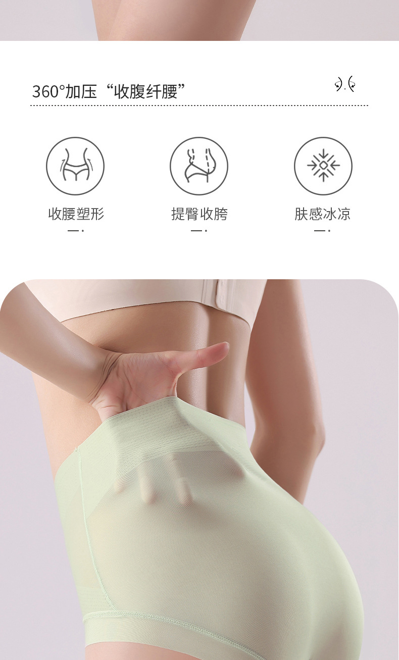 복부 팬티 여성의 얼음 실크 추적없는 높은 허리 엉덩이 고관절 강한 작은 배 여름 얇은 항균 통기성 반바지