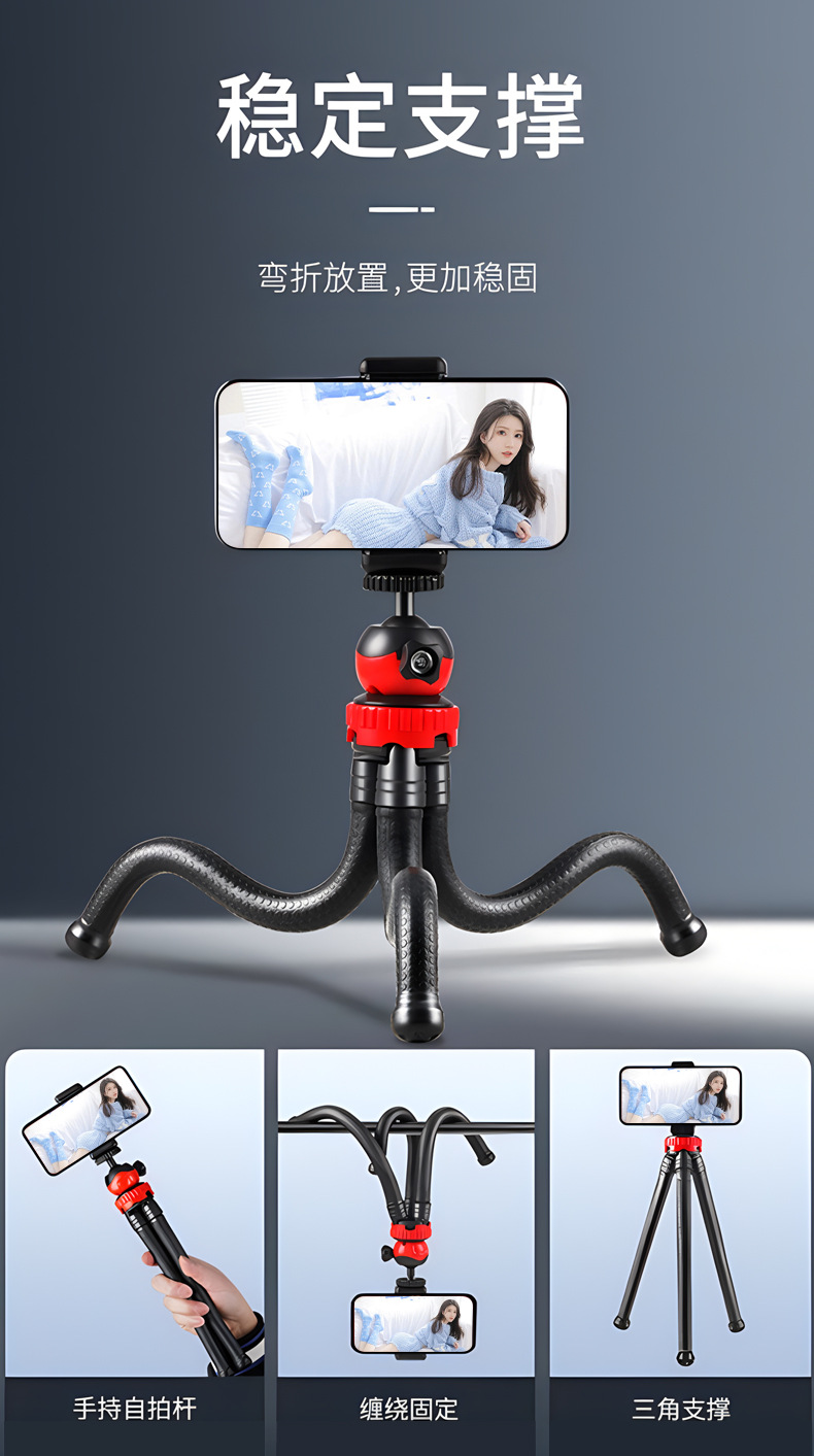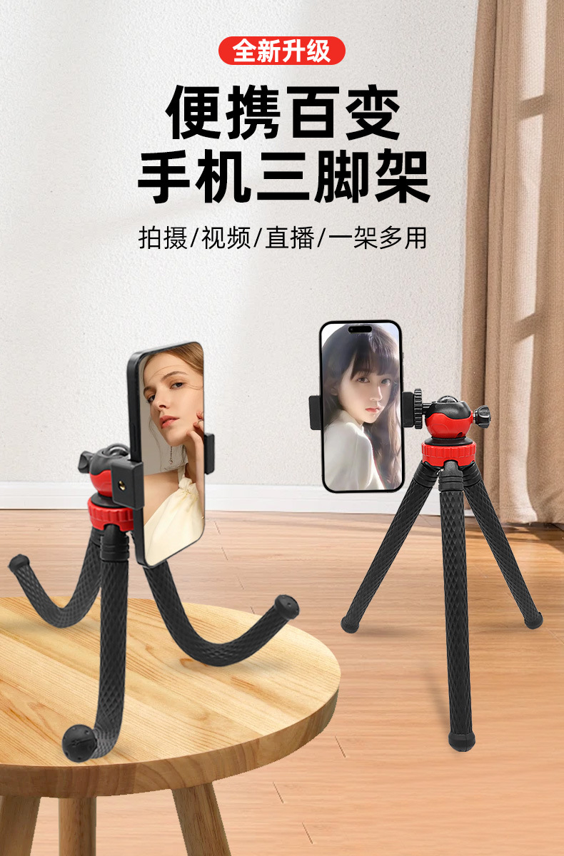 휴대 전화 라이브 데스크톱 스탠드 야외 휴대용 블루투스 셀카 사진 게으른 남자 스탠드 문어 휴대 전화 스탠드