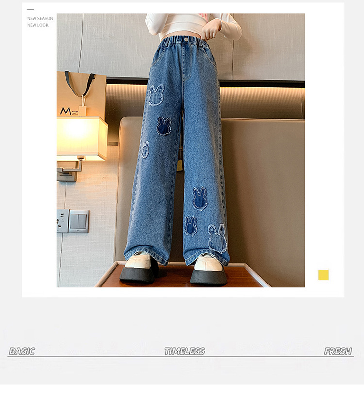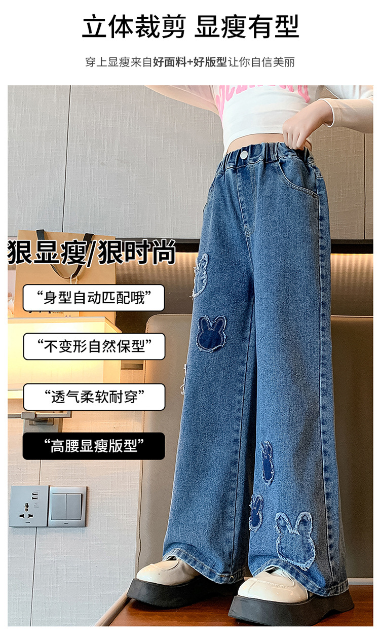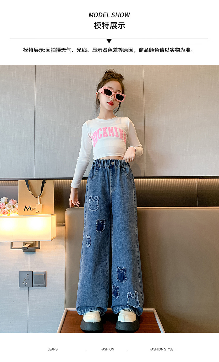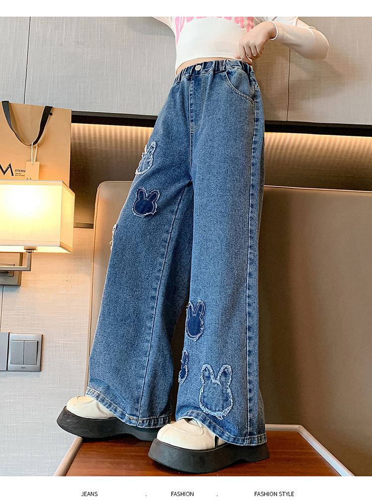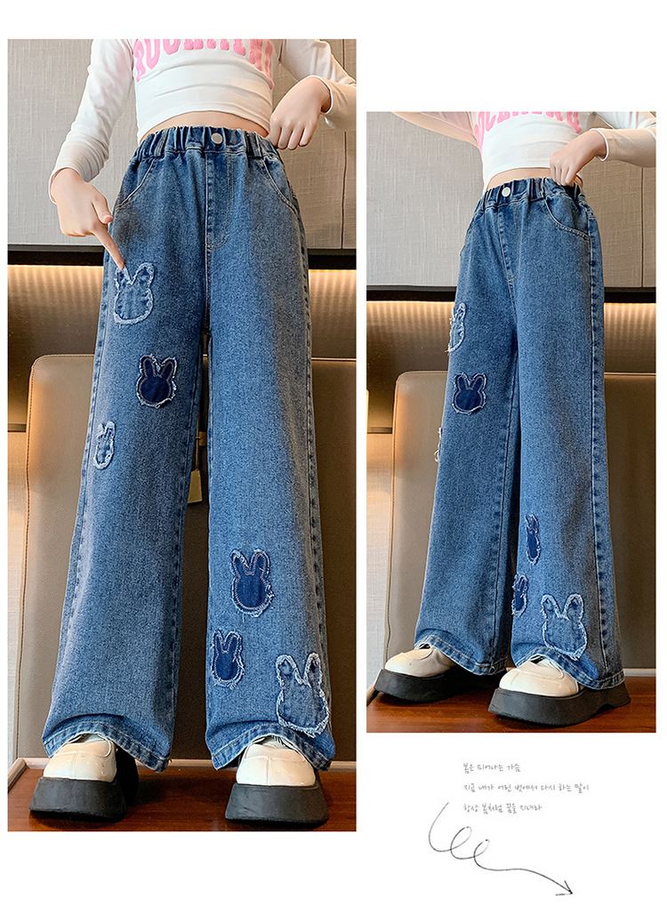 소녀 청바지 봄과 가을 유행 서양식 와이드 레그 바지 중 및 빅 키즈 인터넷 연예인 프라이드 스트리트 어린이 루즈 스트레이트 바지스토어 가기