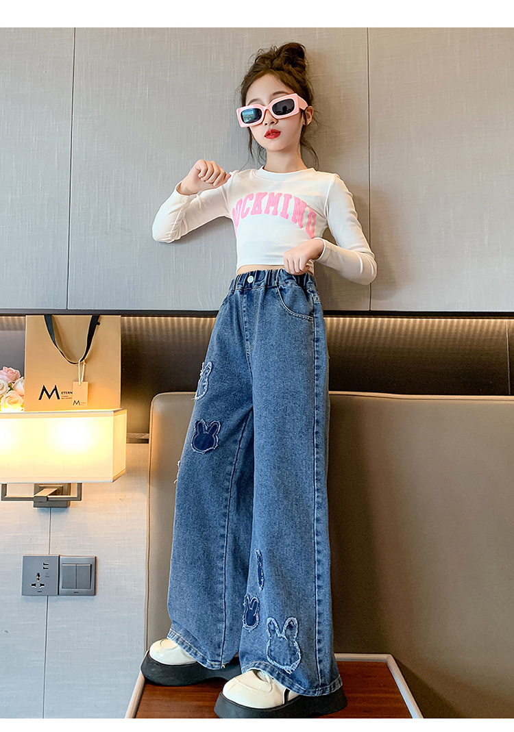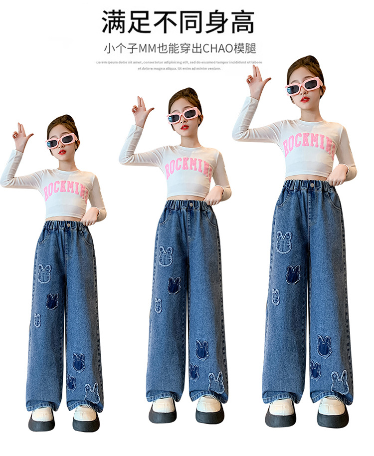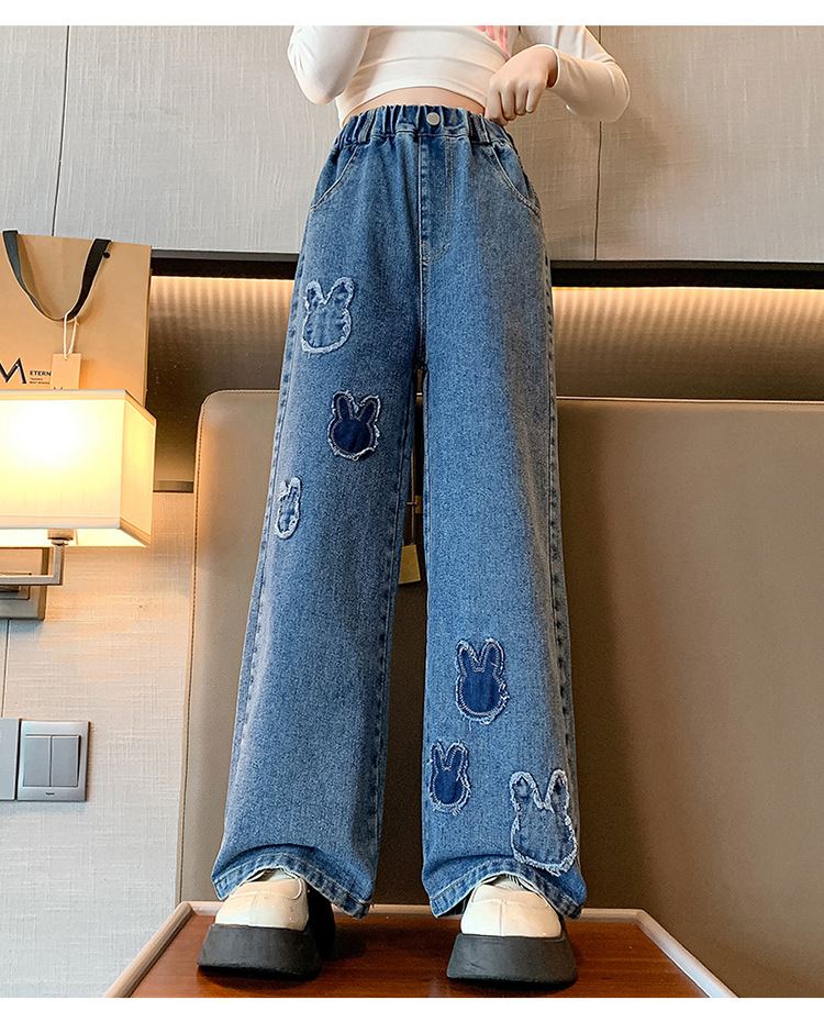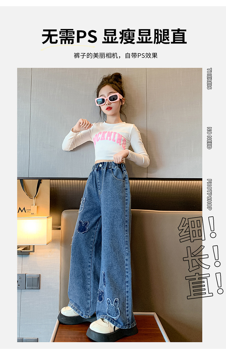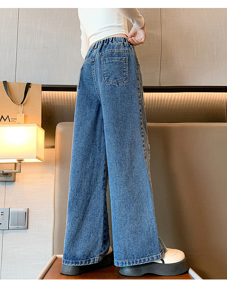 소녀 청바지 봄과 가을 유행 서양식 와이드 레그 바지 중 및 빅 키즈 인터넷 연예인 프라이드 스트리트 어린이 루즈 스트레이트 바지
