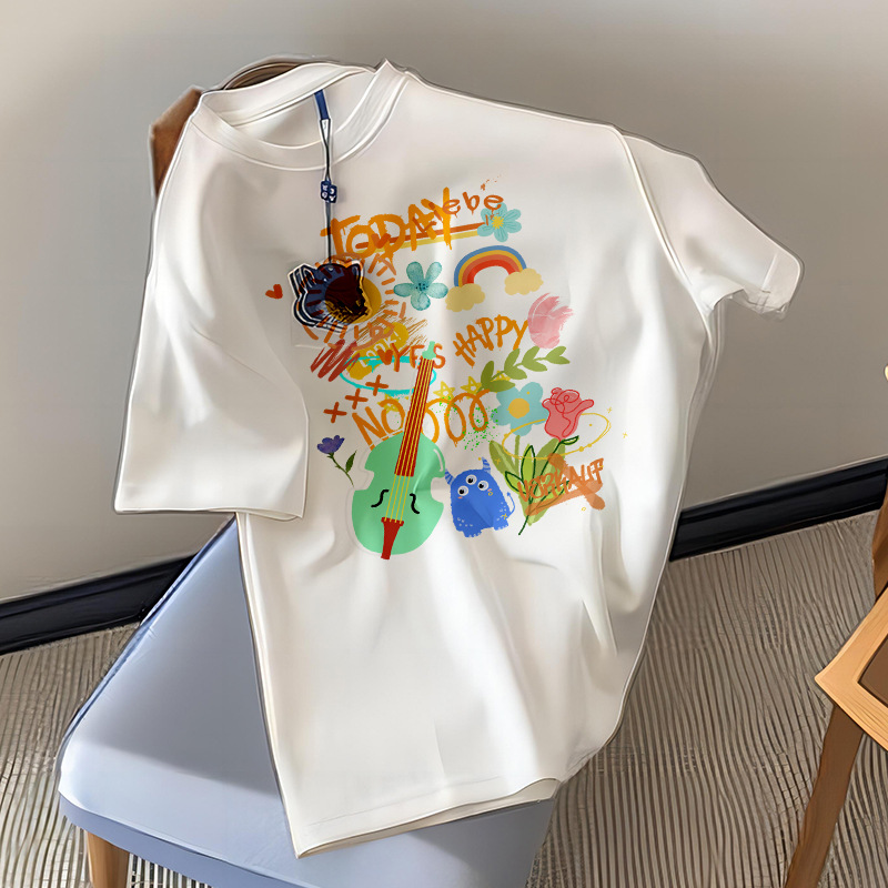 230G 일본식 반팔 티셔츠 여성용 순면 루즈핏 다용도 프린트 여성 티셔츠 이너웨어 캐주얼 학생 반팔 상의