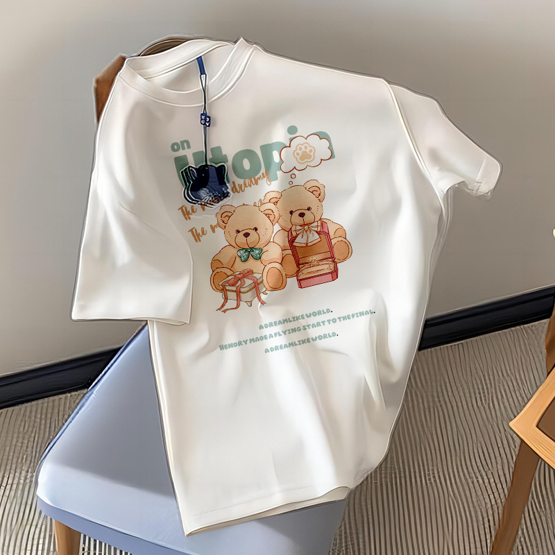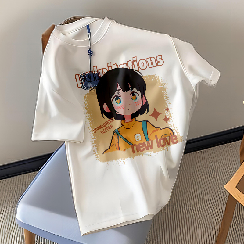 230G 일본식 반팔 티셔츠 여성용 순면 루즈핏 다용도 프린트 여성 티셔츠 이너웨어 캐주얼 학생 반팔 상의스토어 가기