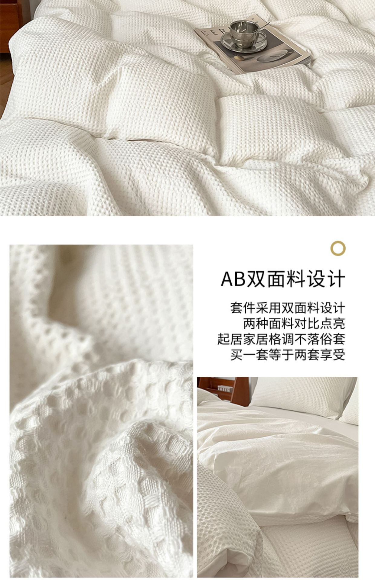 와플 코튼 침대 4 피스 세트 100 코튼 호텔 화이트 퀼트 커버 라이트 럭셔리 심플 침대 시트 3 피스 세트