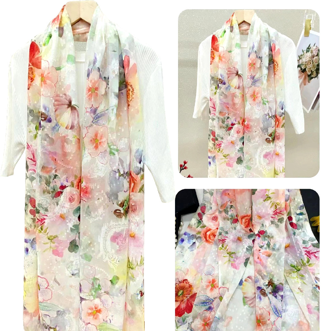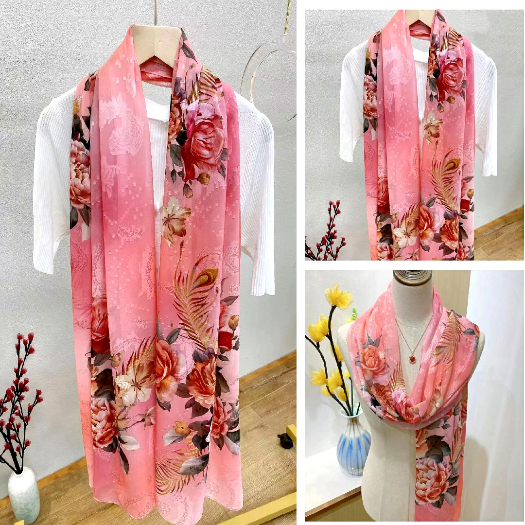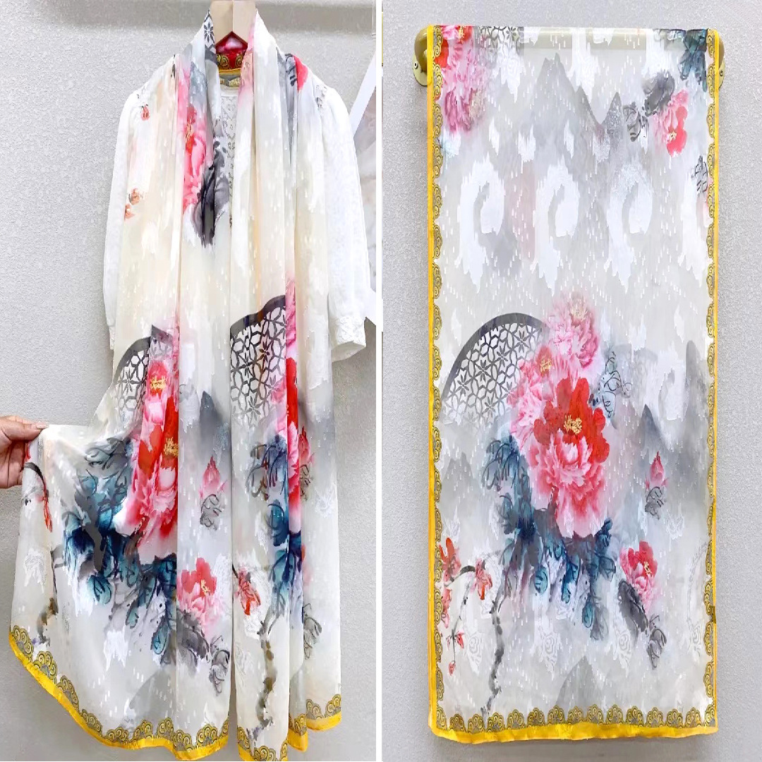 자외선 차단 숄 스카프, 향기로운 구름 꽃무늬 얇은 롱 스카프, 인기 있는 중국 스타일 자카드 고급 다용도 실크 스카프