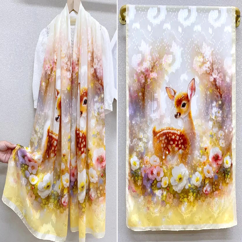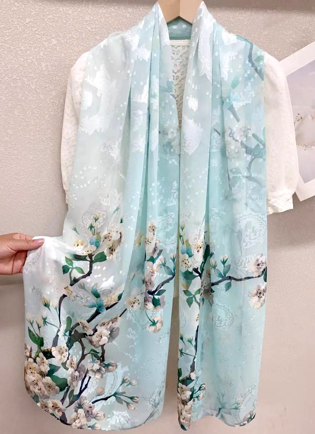자외선 차단 숄 스카프, 향기로운 구름 꽃무늬 얇은 롱 스카프, 인기 있는 중국 스타일 자카드 고급 다용도 실크 스카프스토어 가기
