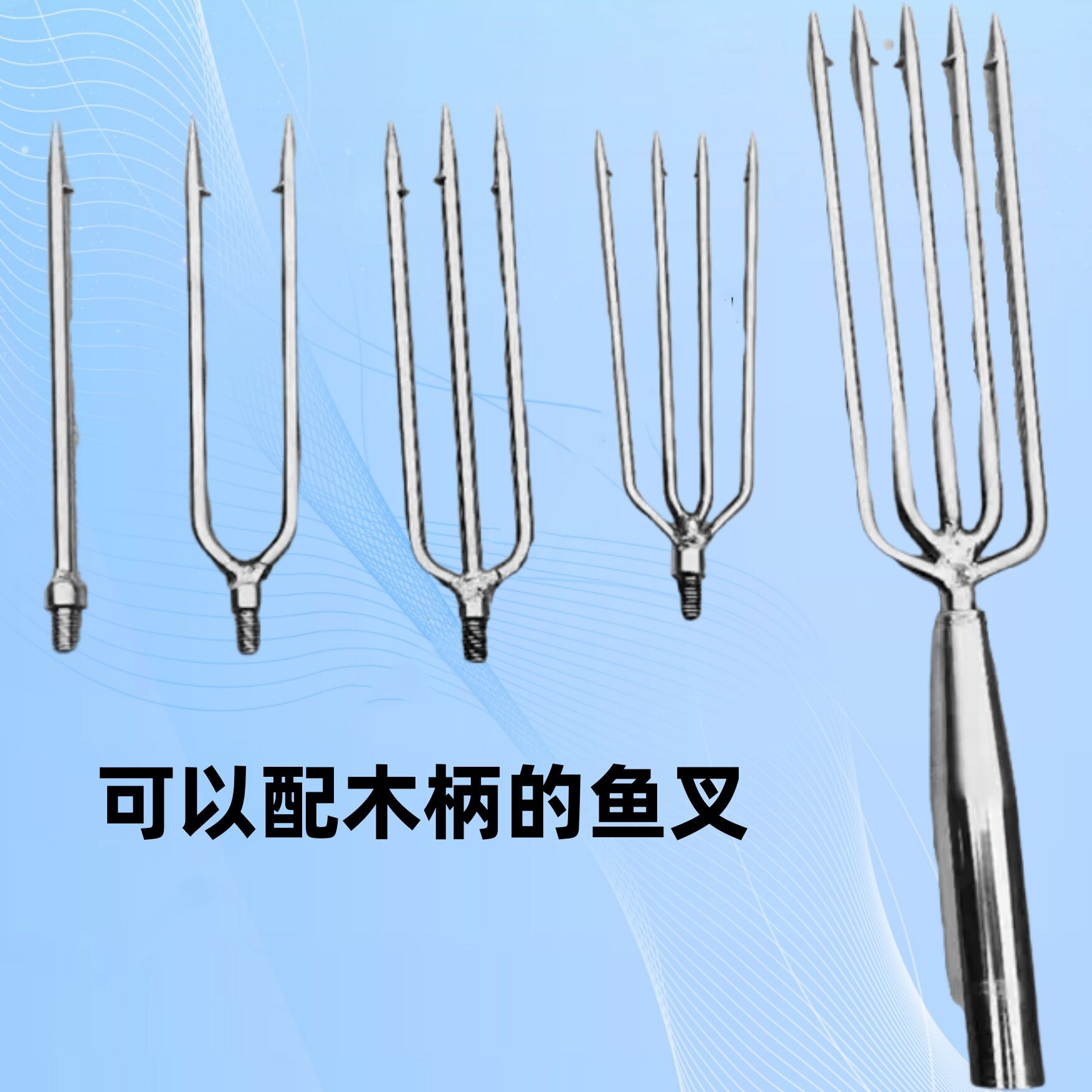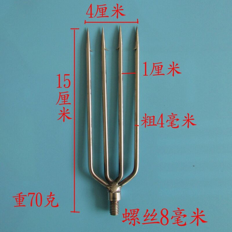 钓鱼不锈钢鱼叉头木柄套管有倒刺老式超硬小号多功能8毫米通用