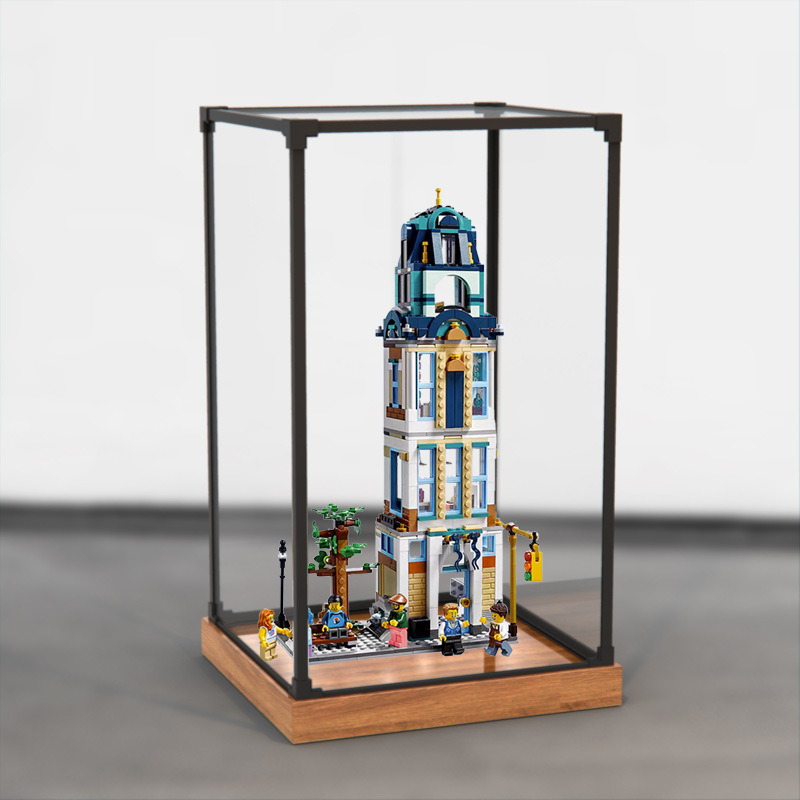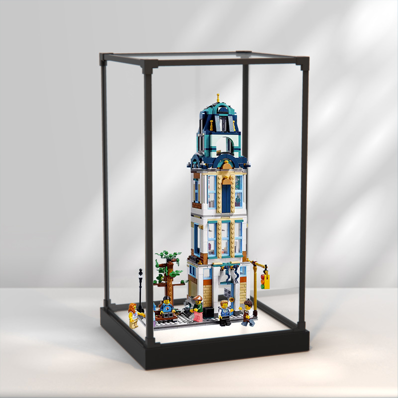 레고 31141 타운 스트리트 빌딩 블록 수제 아크릴 투명 디스플레이 박스 용 합금 프레임 저장 상자스토어 가기