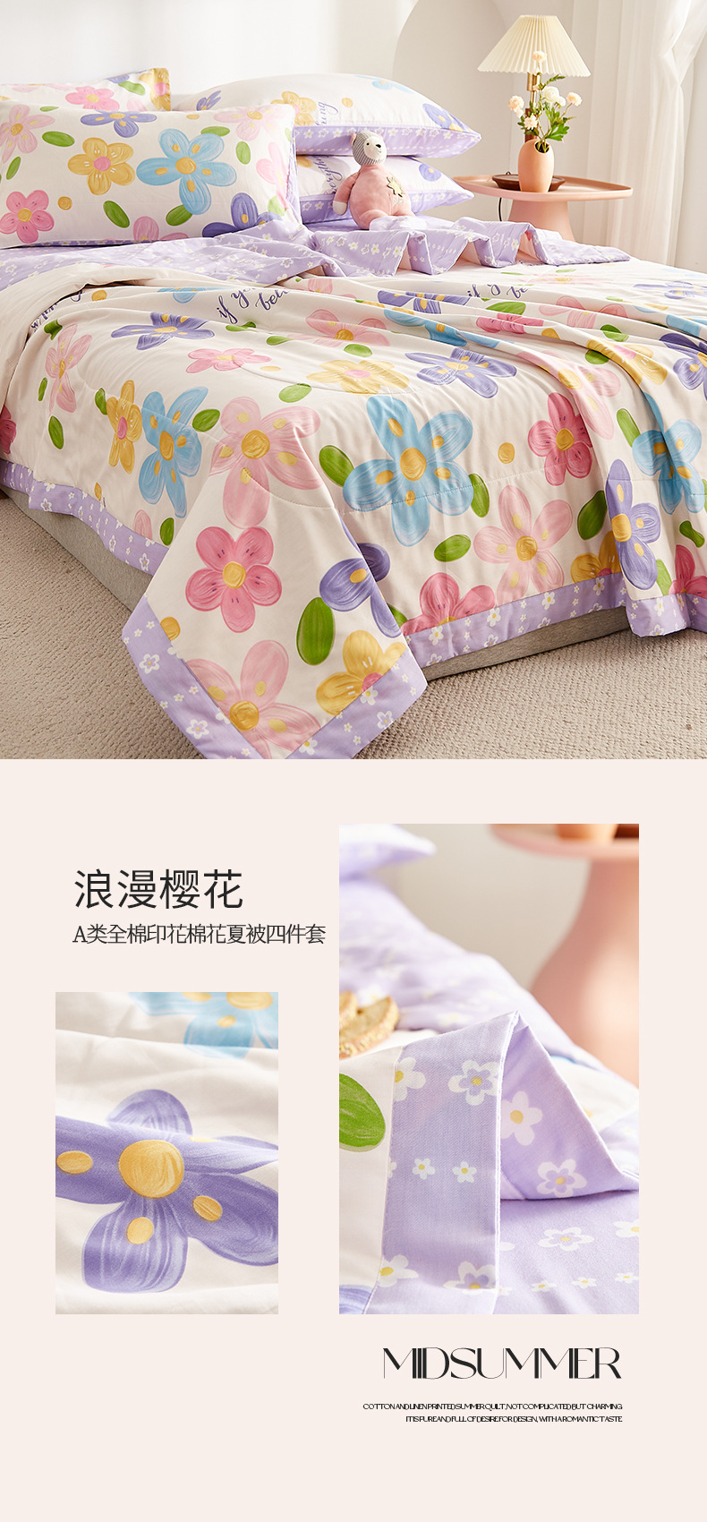 • 1.2 침대 여름 이불 4 피스 세트 [여름 이불 150*200 시트 230*250 베갯짓 48*74*2]]
