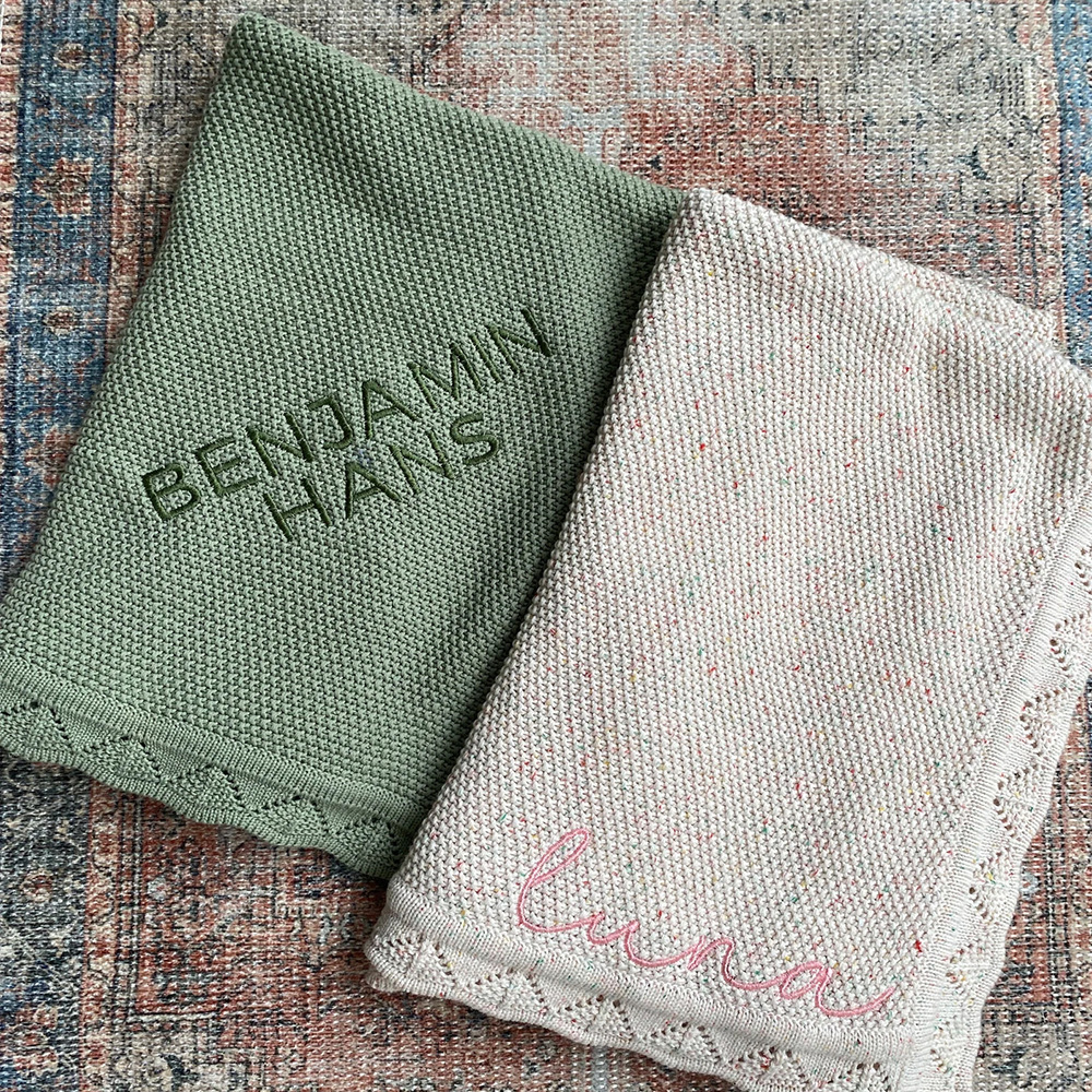 Etsy 뜨거운 판매 자수 로고 아기 담요 소년 소녀 니트 담요 아기 방풍 커버 퀼트스토어 가기