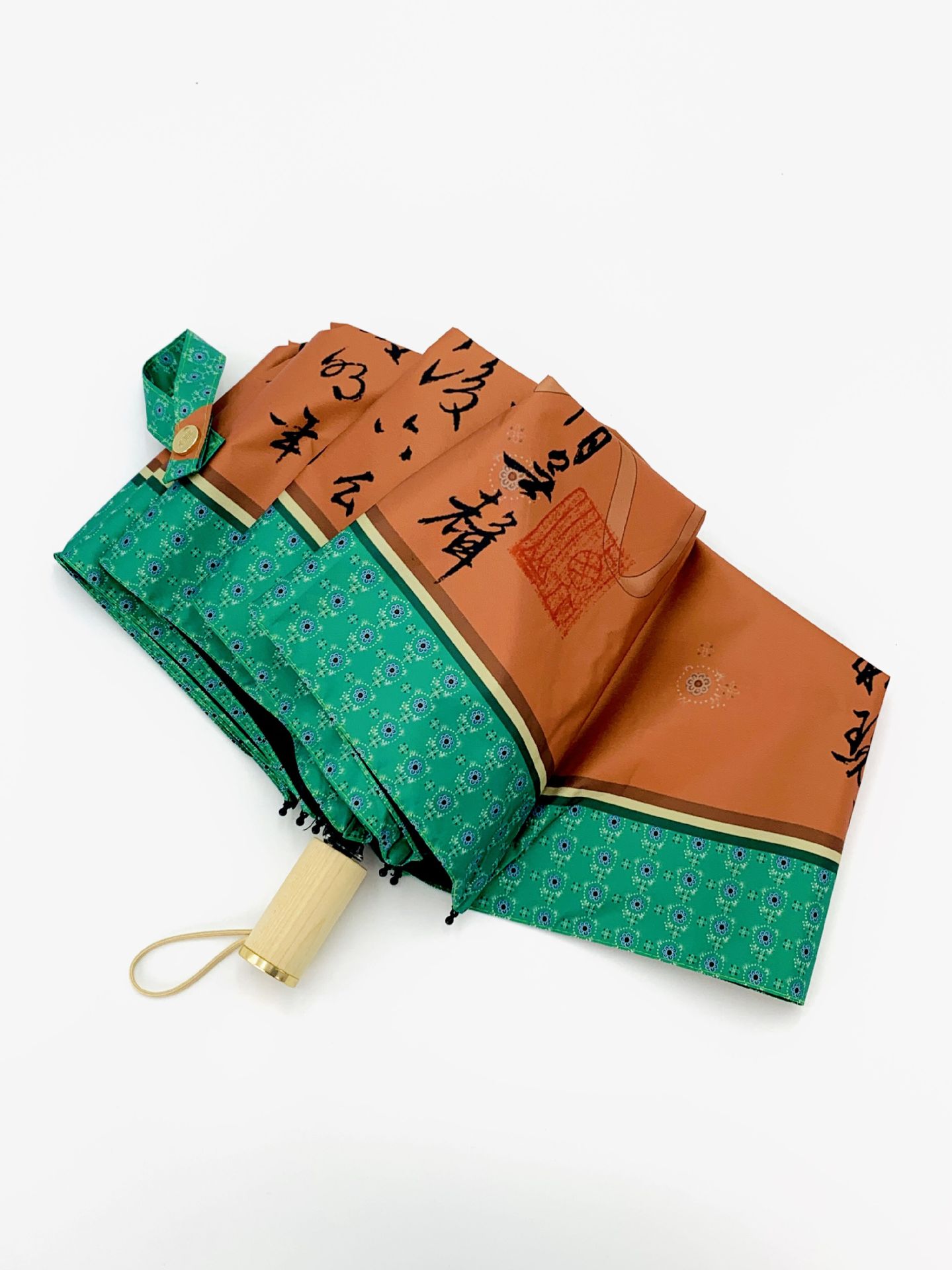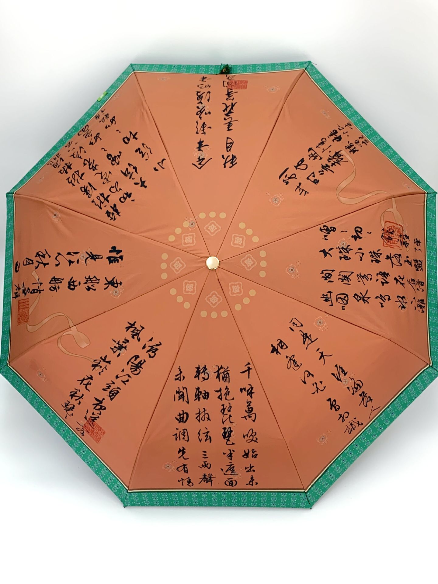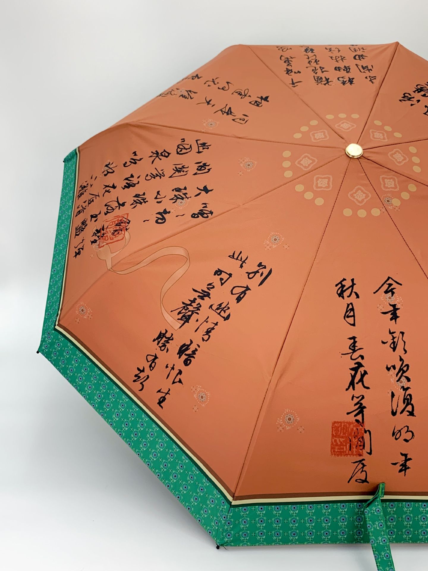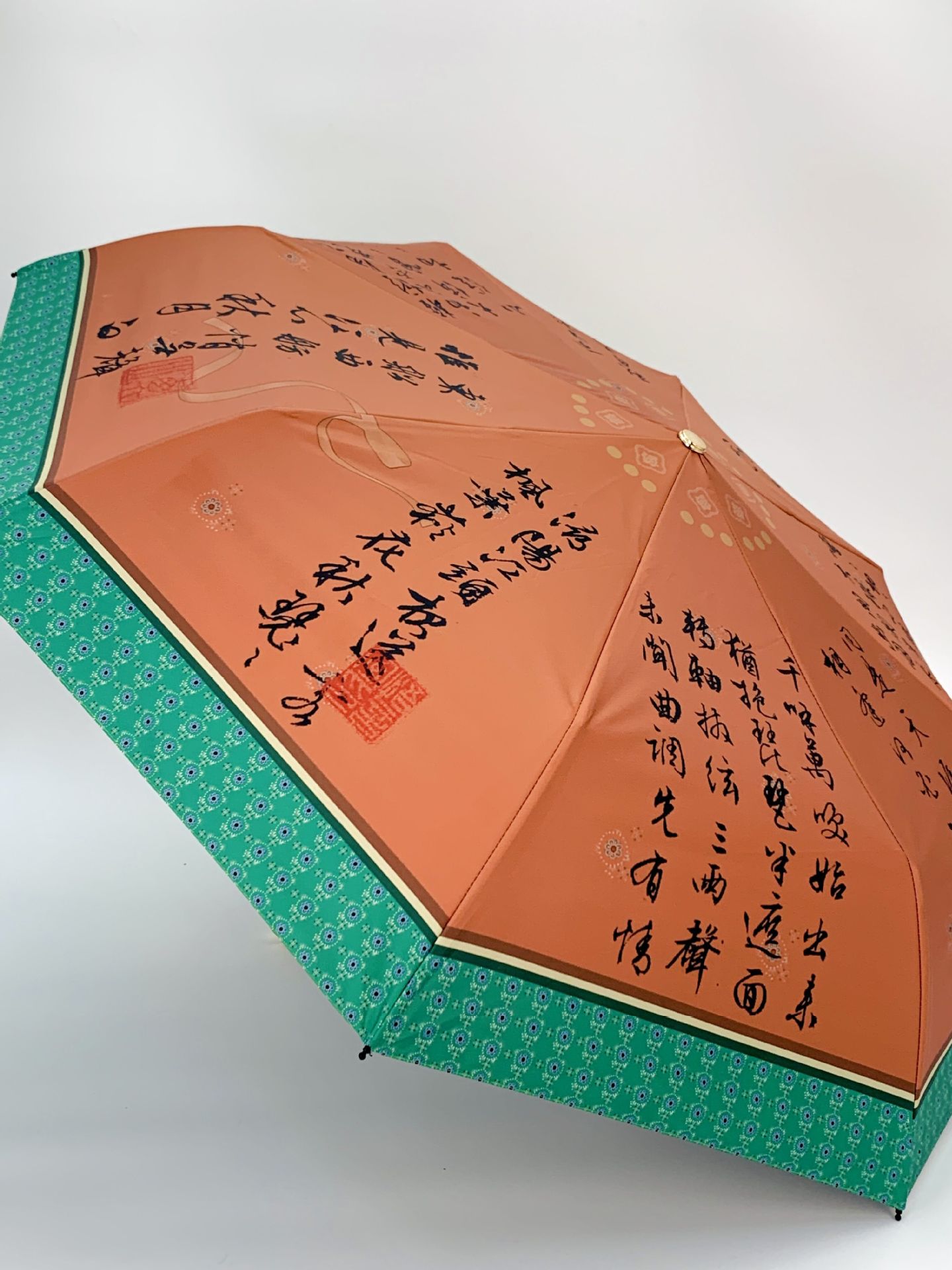 [피파 라인] 레트로 스타일 우산 자동 접는 서예 화창한 우산 검은 접착제 선 스크린 선물 우산