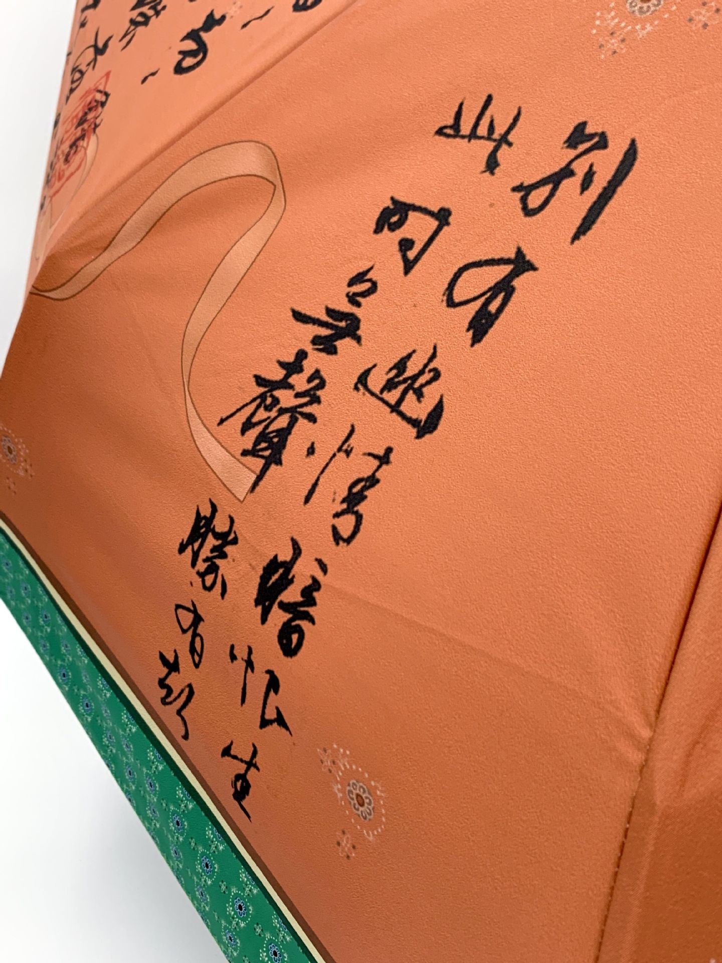 [피파 라인] 레트로 스타일 우산 자동 접는 서예 화창한 우산 검은 접착제 선 스크린 선물 우산스토어 가기