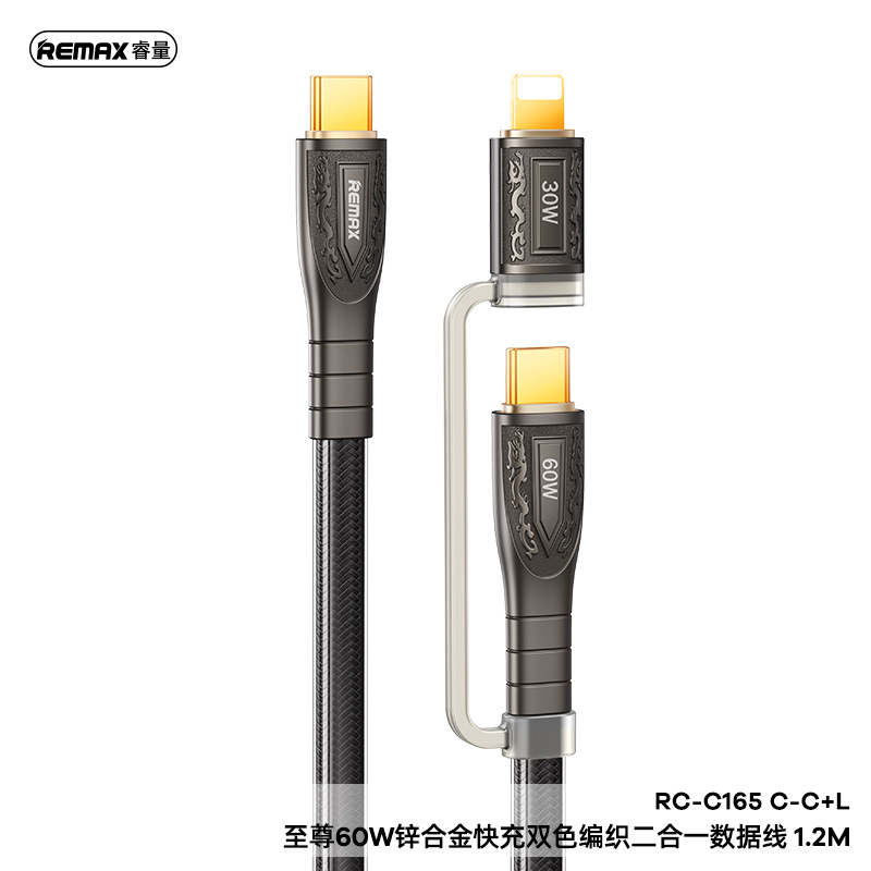 REMAX Supreme PD66W 아연 합금 고속 충전 2 색 짠 2 대 1 빠른 충전 금 데이터 케이블 충전 도매
