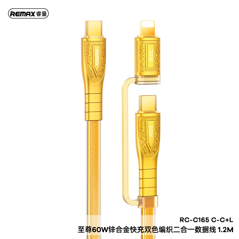 REMAX Supreme PD66W 아연 합금 고속 충전 2 색 짠 2 대 1 빠른 충전 금 데이터 케이블 충전 도매스토어 가기