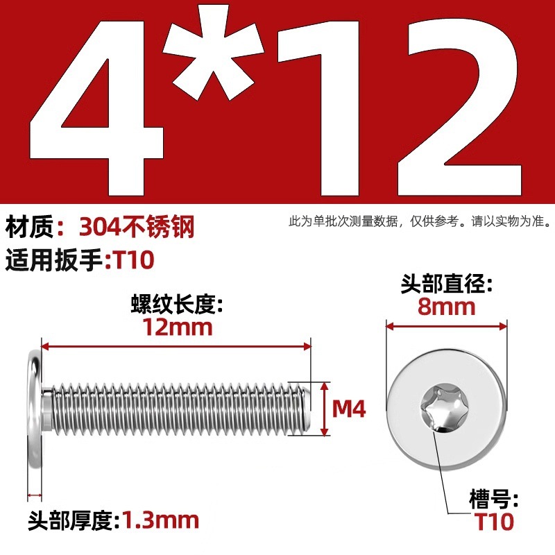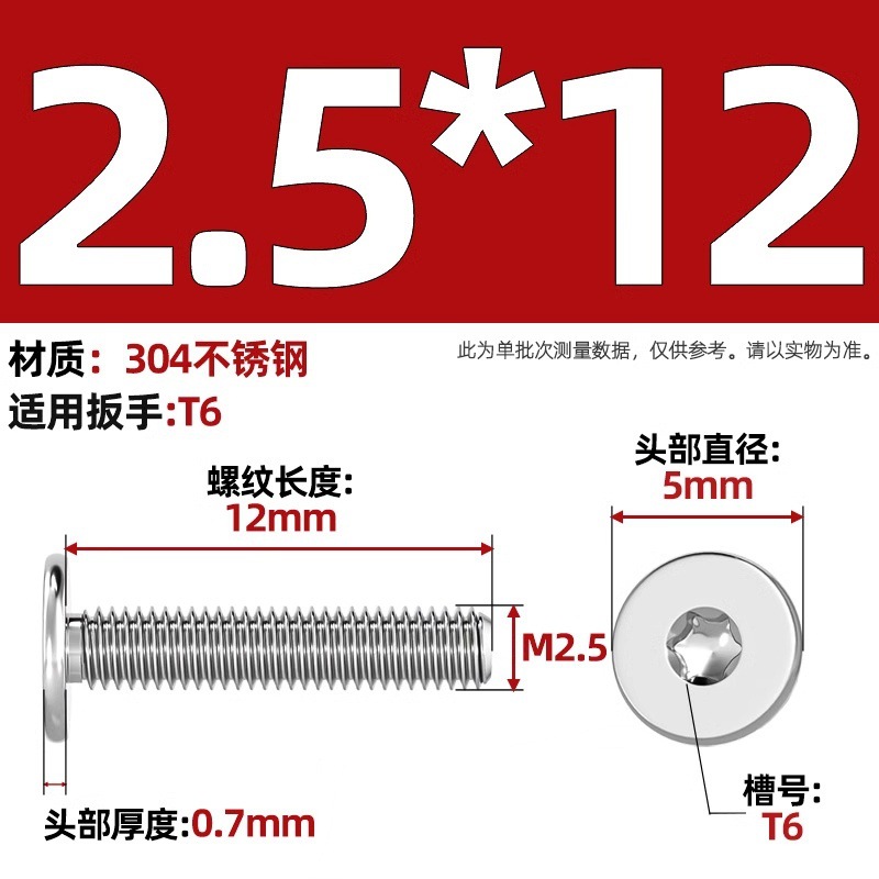 304 스테인레스 스틸 플랫 헤드 내부 Torx 스크류 C 헤드 얇은 헤드 플랫 헤드 대형 플랫 헤드 초박형 노트북 나사
