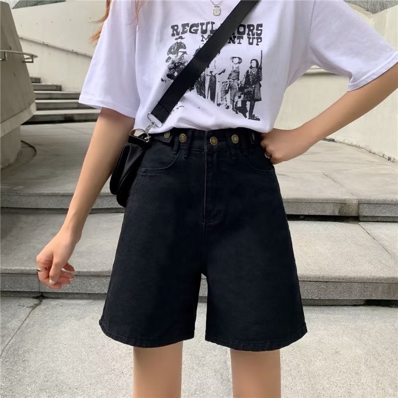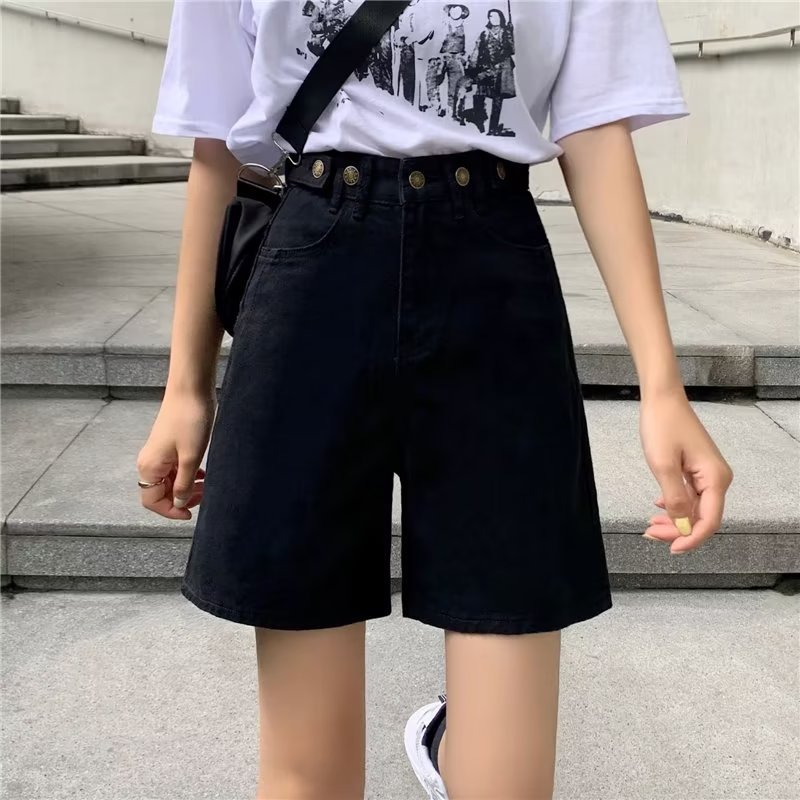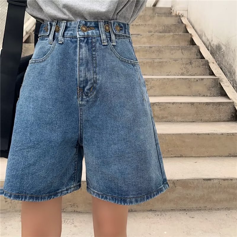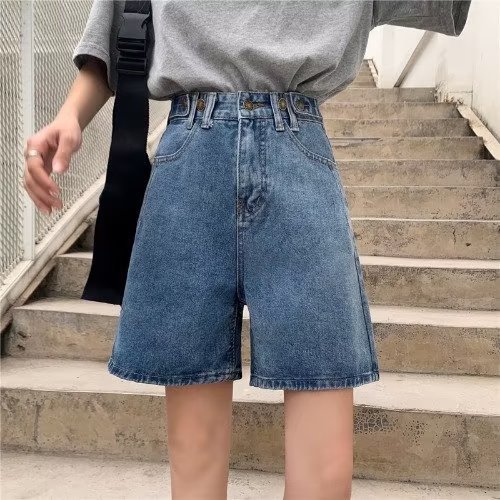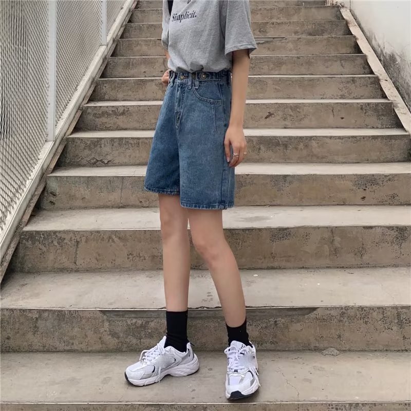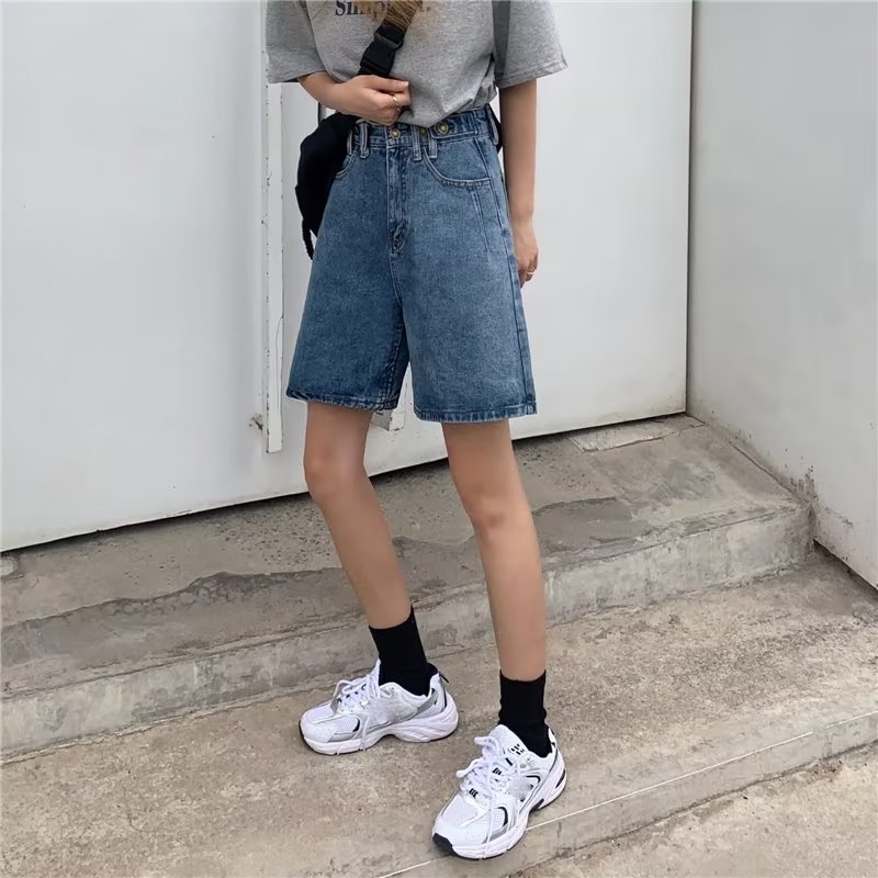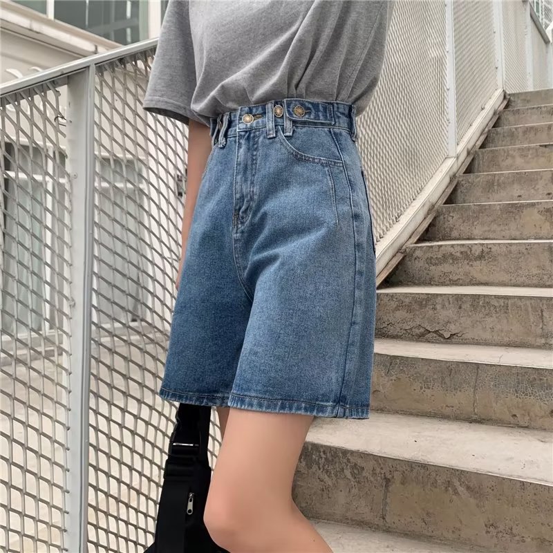 2024 달콤한 쿨 스타일 여름 새로운 높은 허리 5 점 데님 반바지 여성 느슨한 올 매치 디자인 센스 스트레이트 트렌디 미드 길이 바지스토어 가기