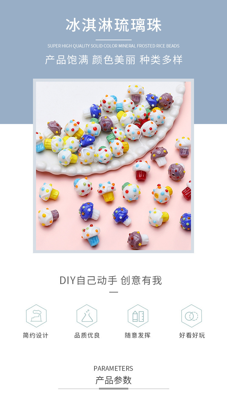 재미있는 새로운 유리 아이스크림 스트레이트 홀 구슬 DIY 수제 구슬 팔찌 목걸이 귀걸이 액세서리 소재스토어 가기