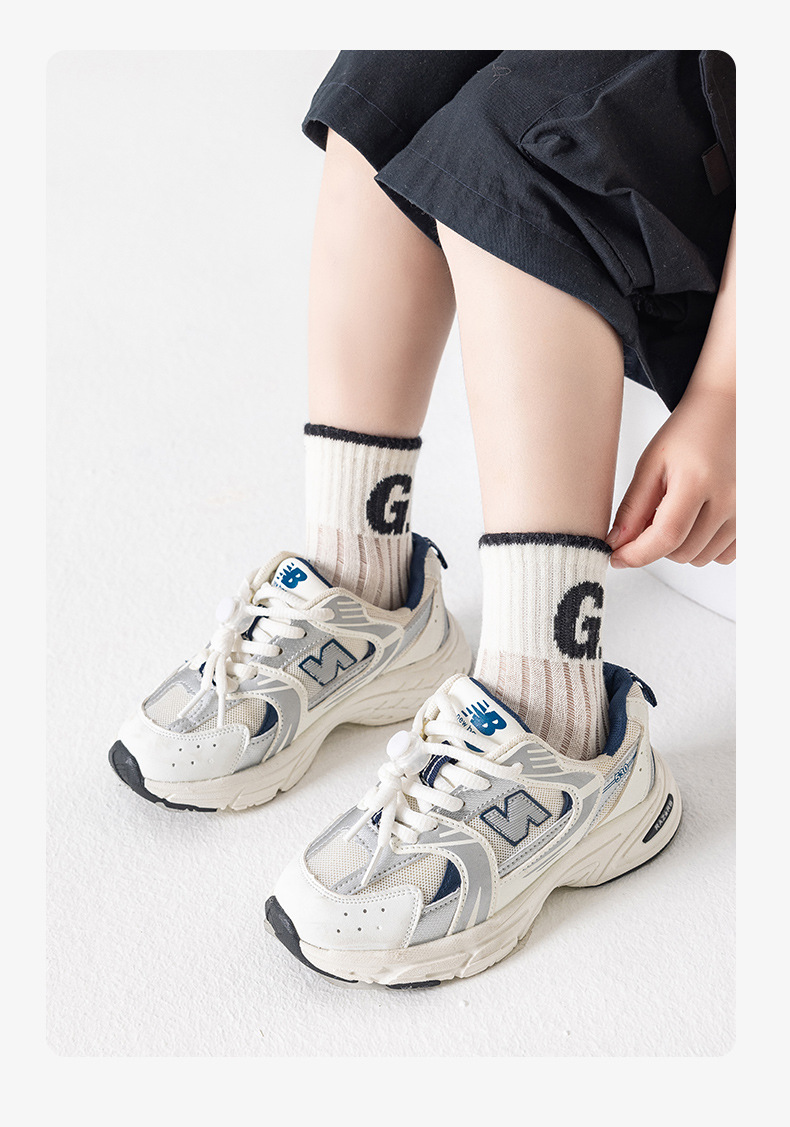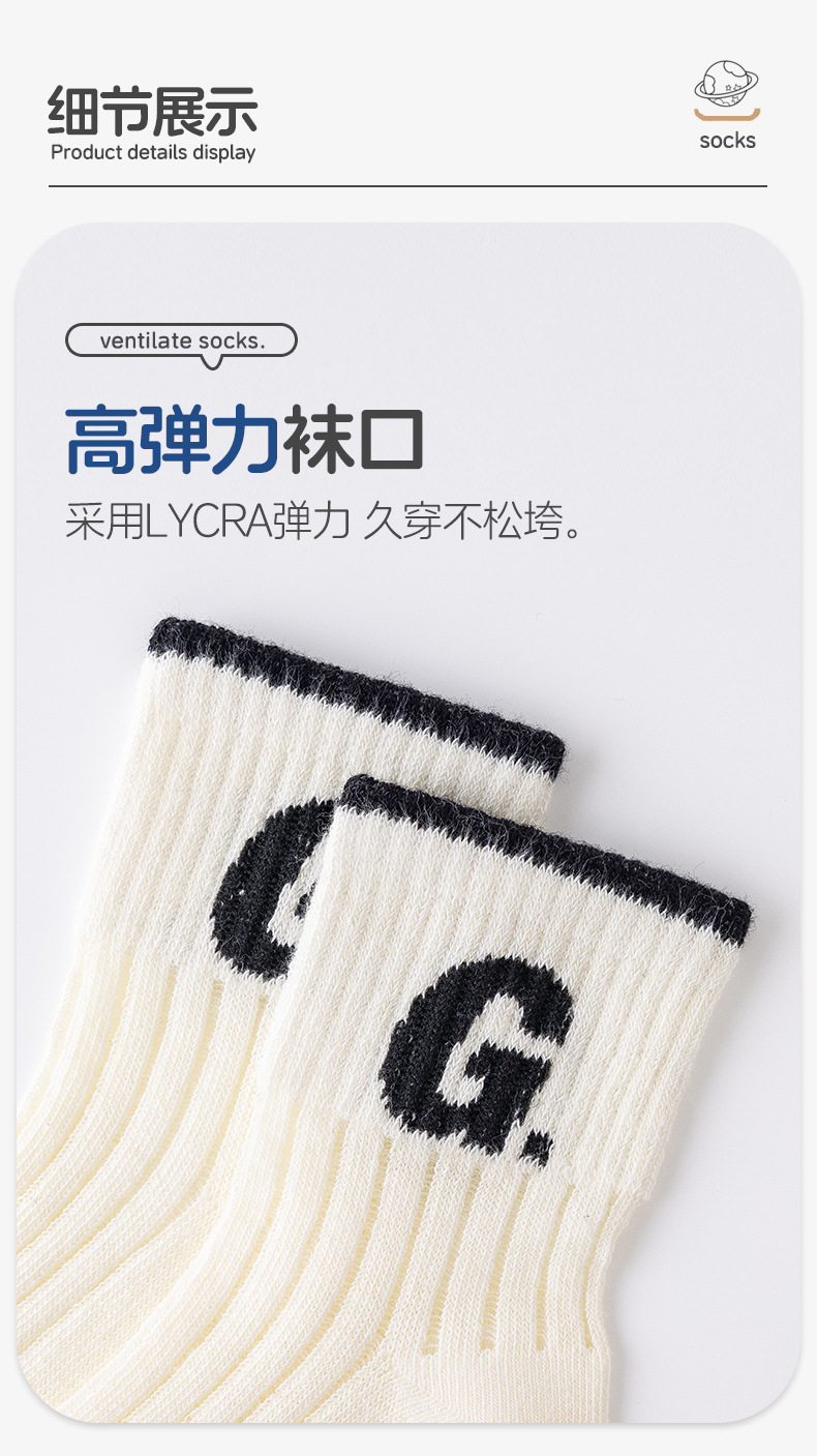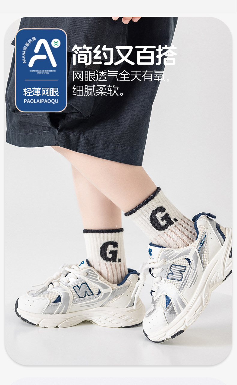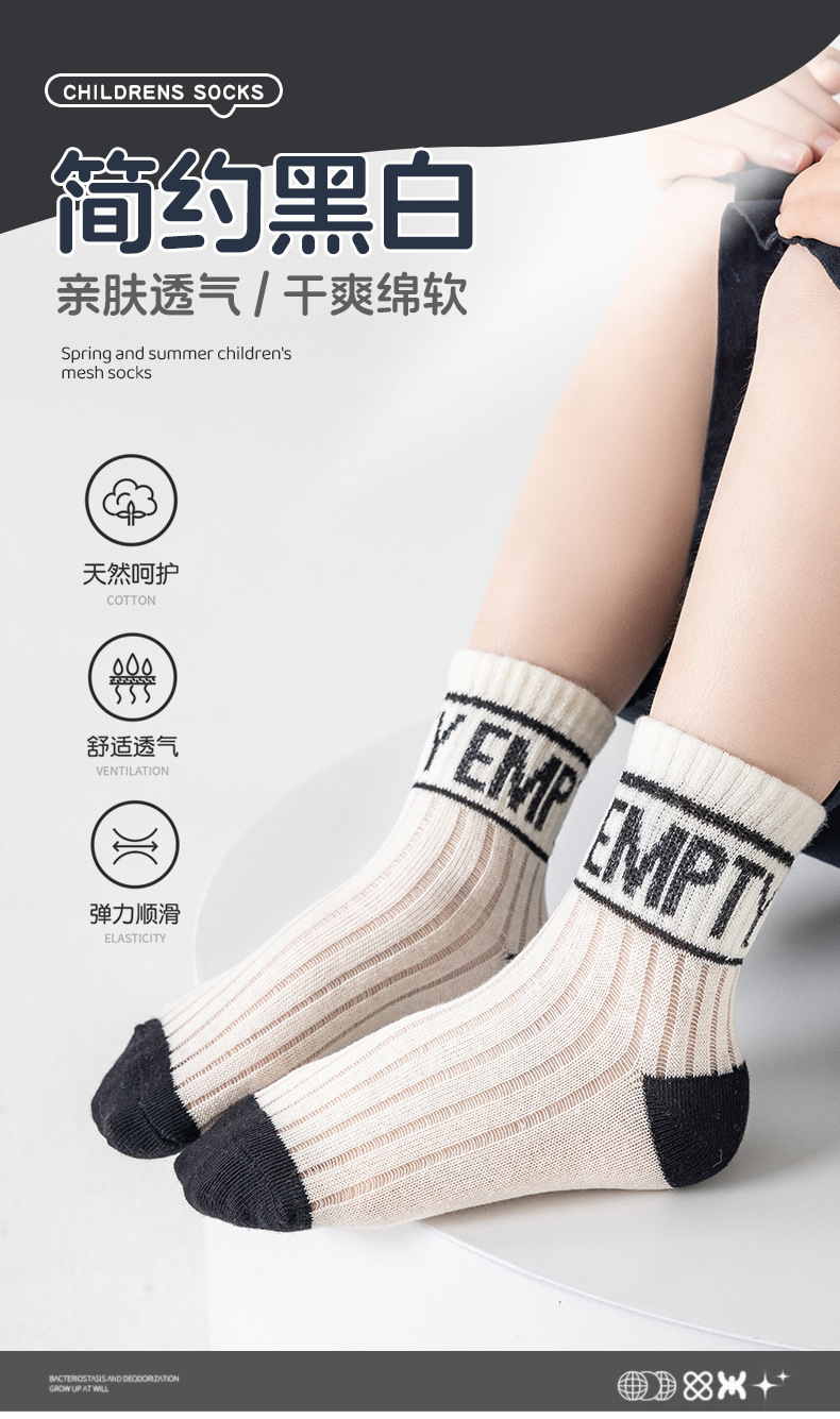 어린이를위한 베스 코어 봄과 여름 메쉬 양말 소년 중형 및 대형 어린이를위한 얇은 통기성 흑백 편지 면 양말스토어 가기