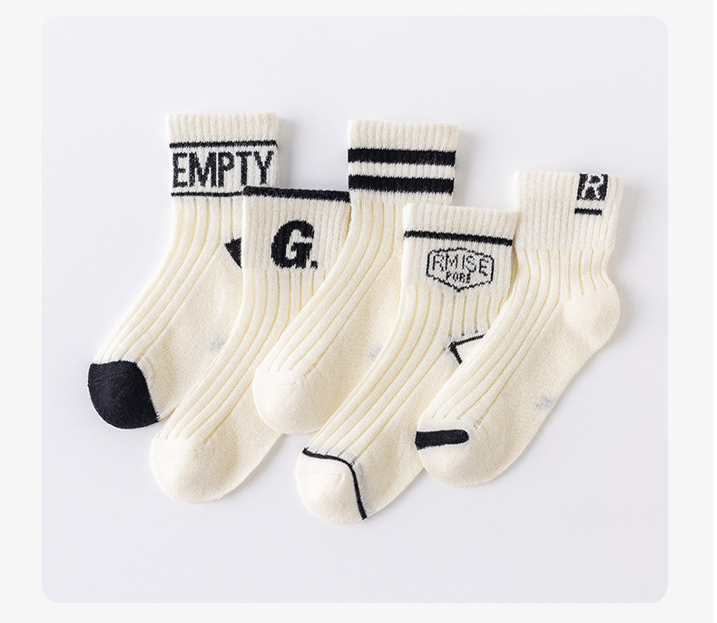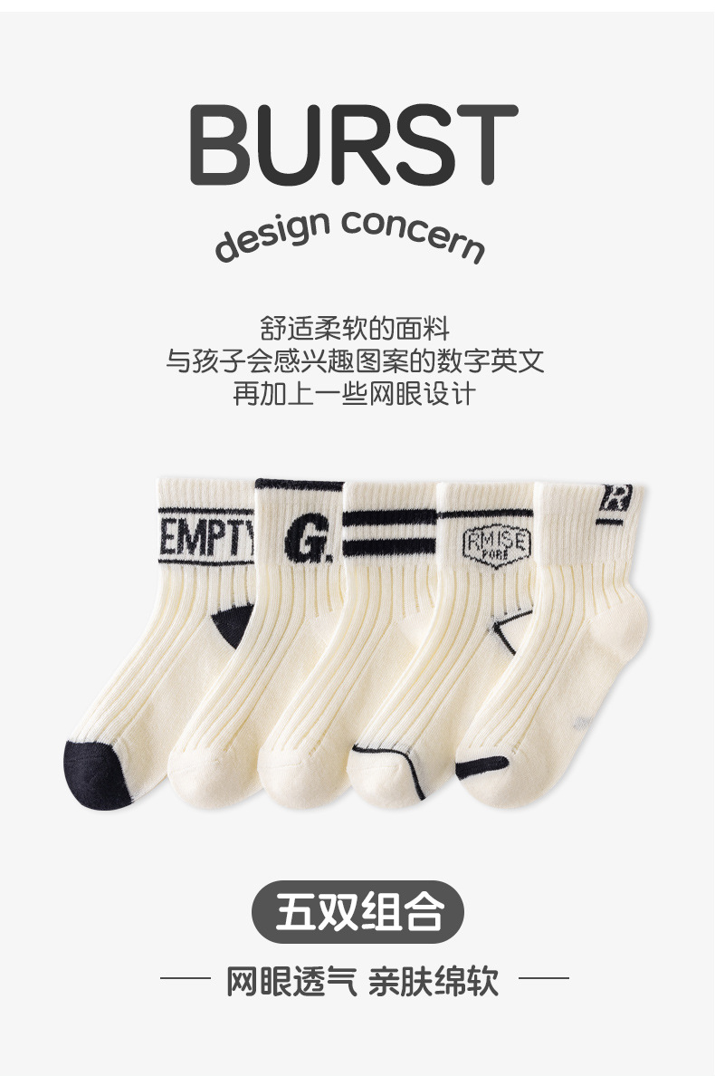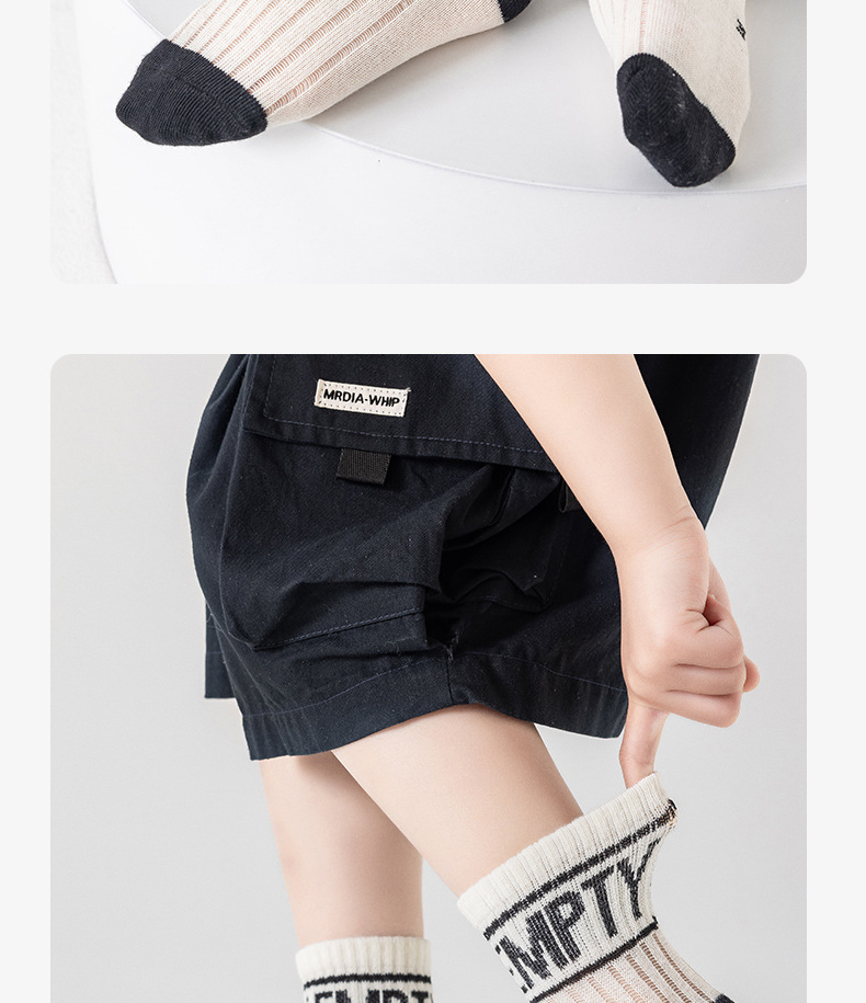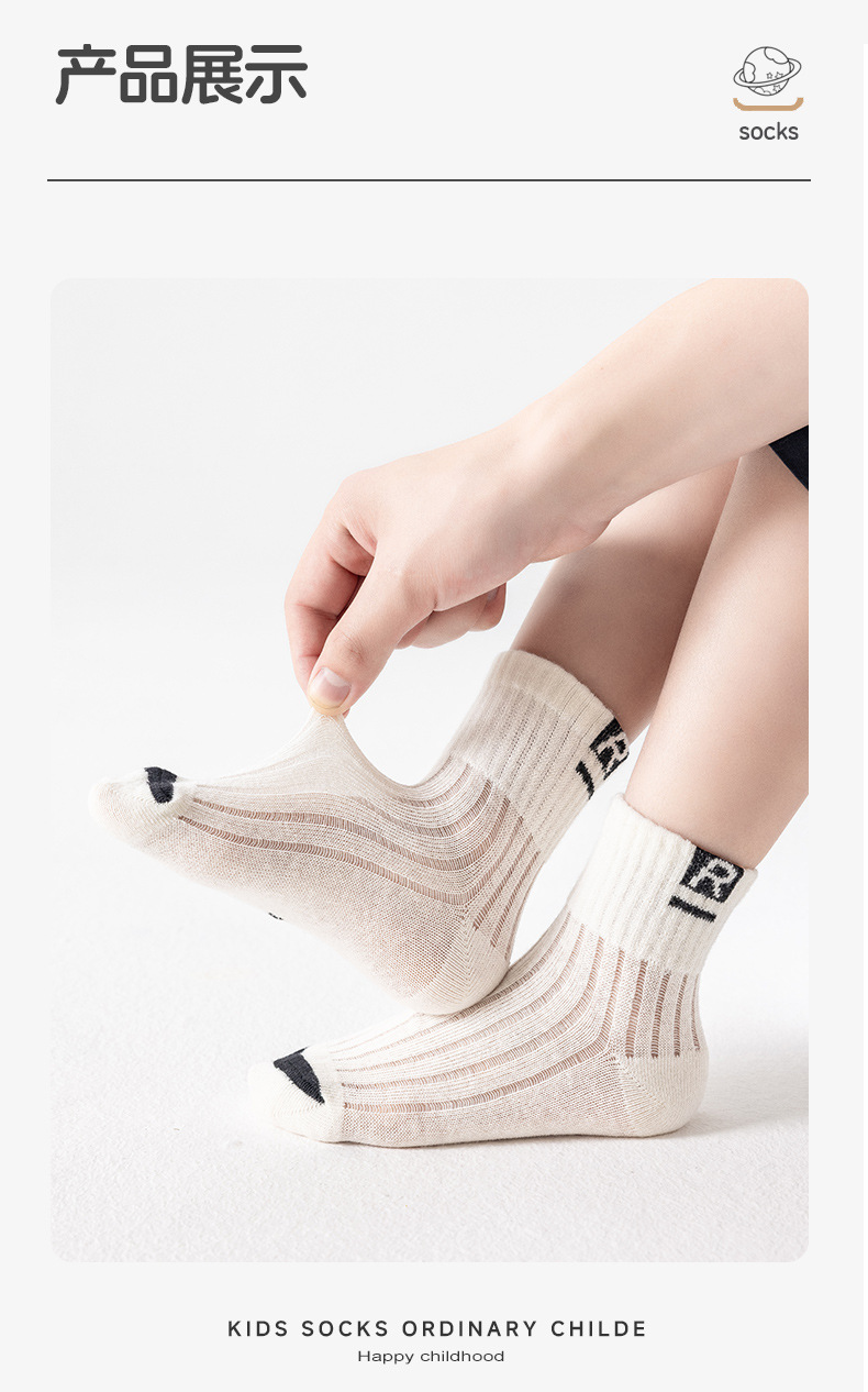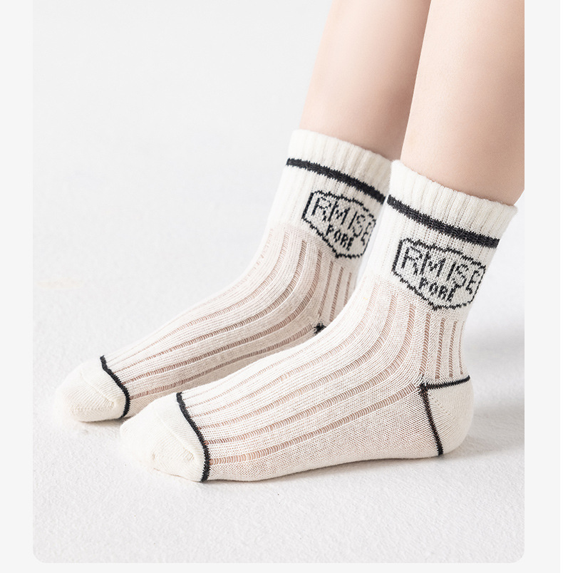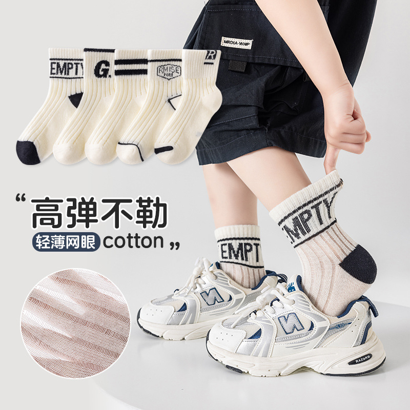 어린이를위한 베스 코어 봄과 여름 메쉬 양말 소년 중형 및 대형 어린이를위한 얇은 통기성 흑백 편지 면 양말