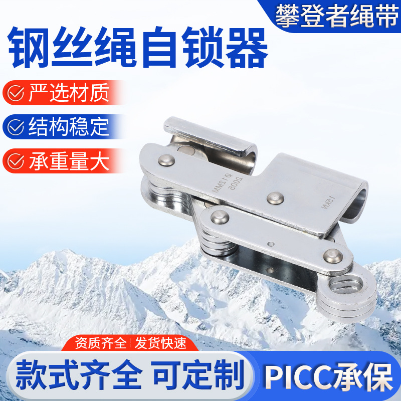 강철 와이어 로프 자동 잠금 장치 암벽 등반 추락 방지 장치 높이 8mm 공중 작업 안전 로프 하강 로프 그립 보호 장치