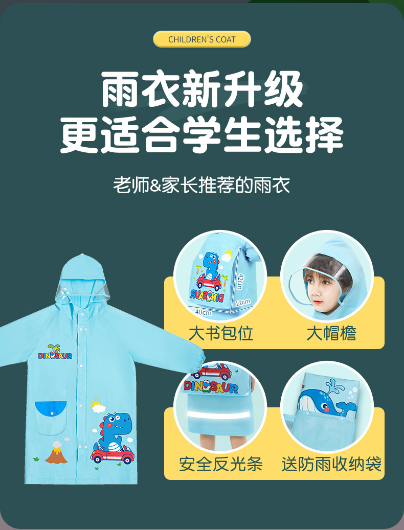 어린이 비옷 소년 소녀 유치원 아기의 새로운 전신 방수 학생 스쿨백 비트 어린이 판초스토어 가기
